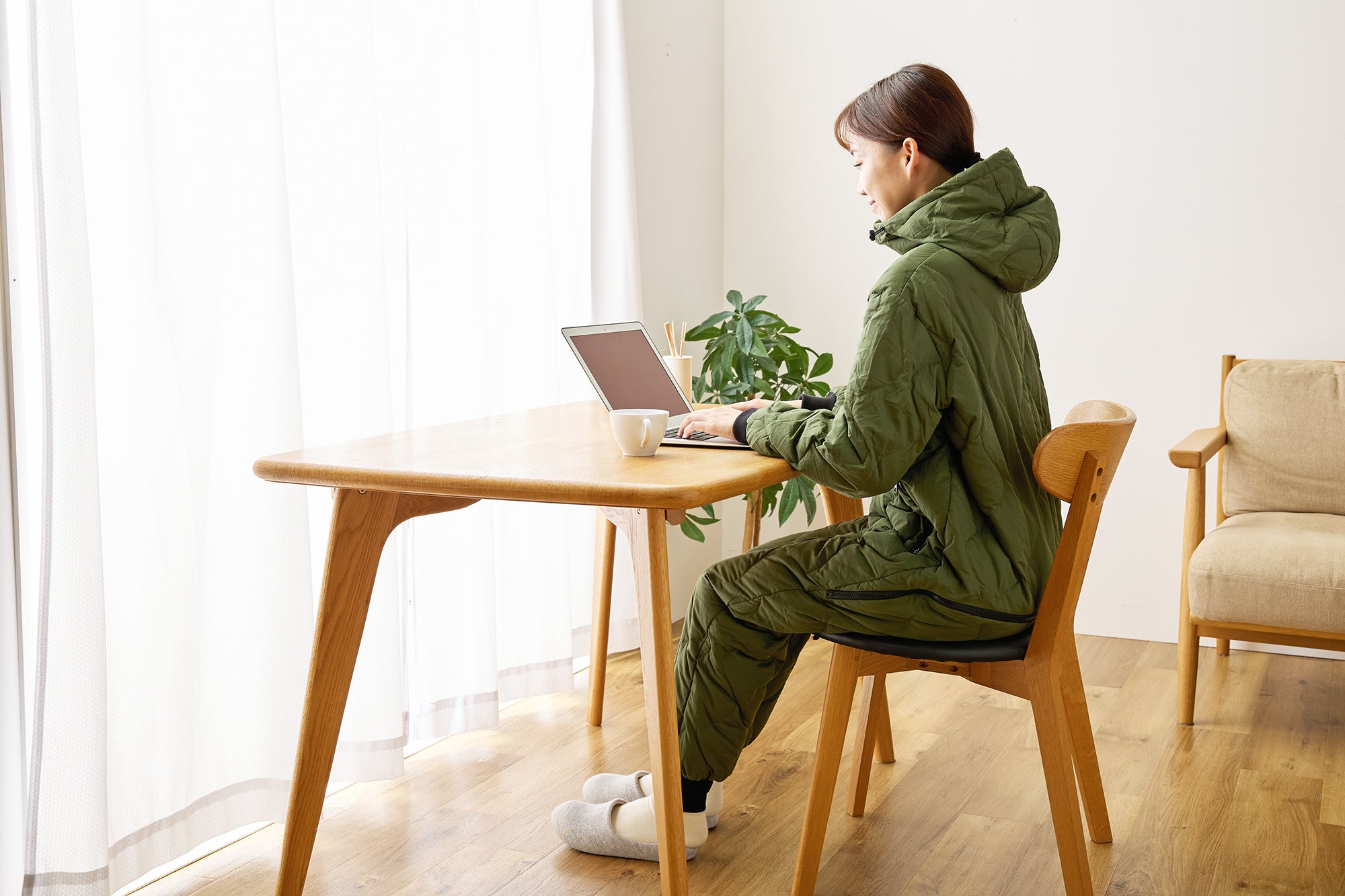 「着る寝袋」第二弾は12月よりAmazonにて一般販売を開始。これからの季節は、キャンプシーンだけでなく在宅ワーク時や自宅でのくつろぎタイムのルームウェアとしても活躍します。普段の洋服の上に着るだけで手軽に防寒対策ができ、電気代の節約にも繋がります。