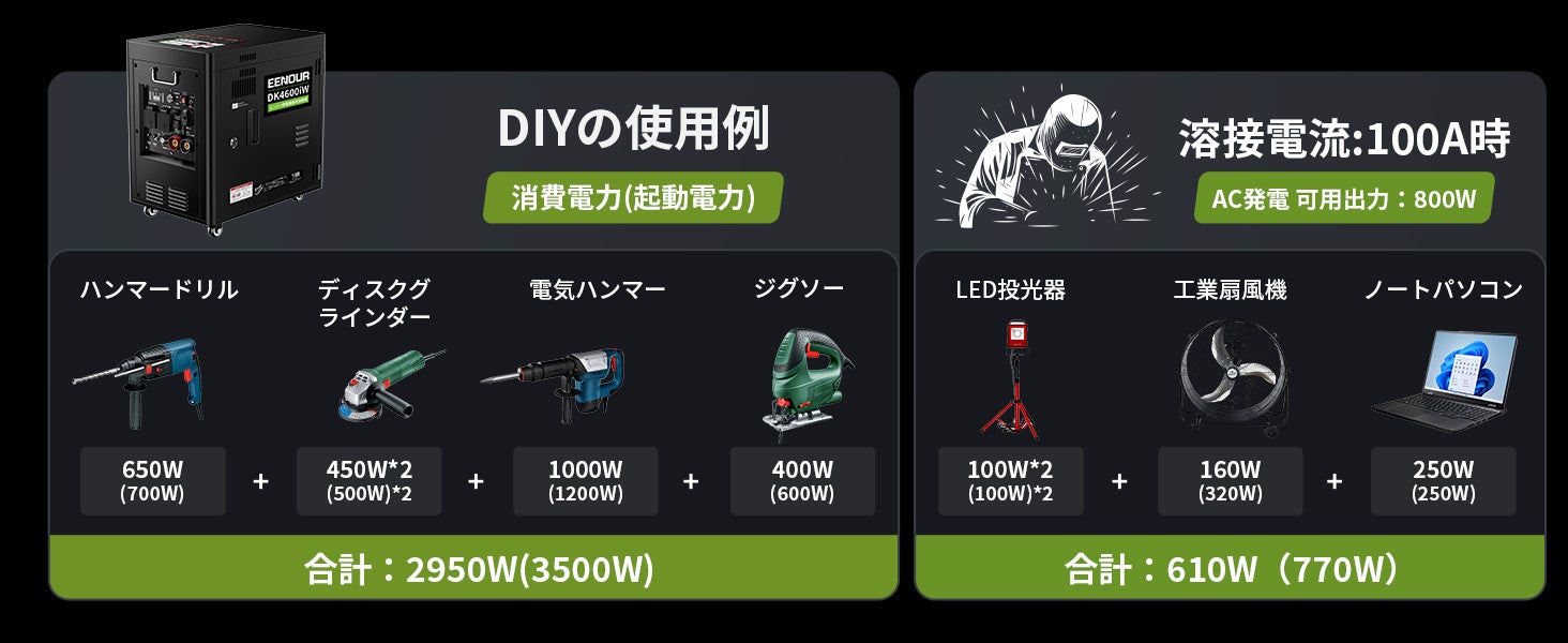 低燃費&静音設計!EENOUR初の発電機兼用溶接機「DK4600iW」11月28日発売