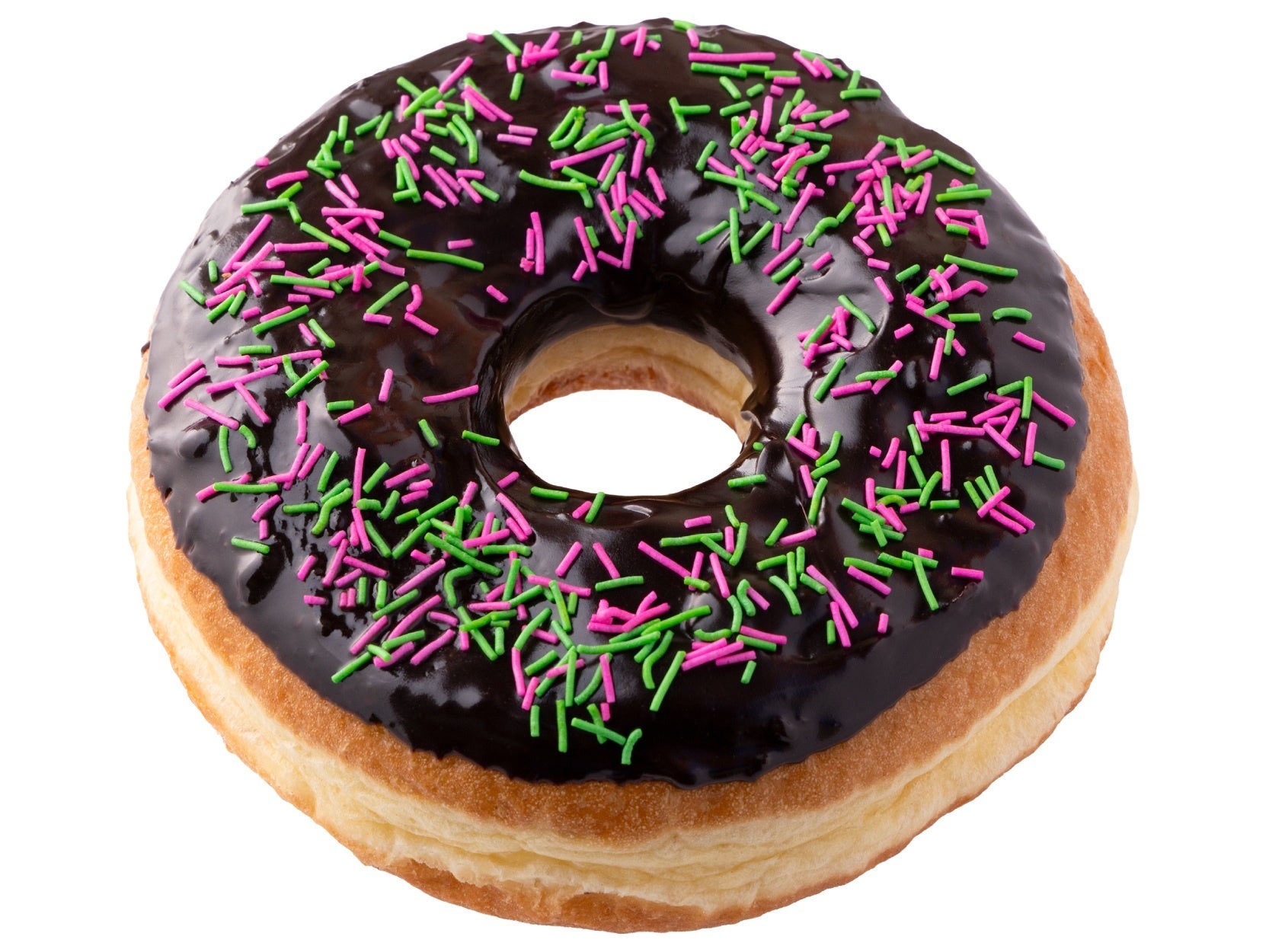 ふんわり食感のドーナツに、鮮やかなピンクのアイシングとカラフルなスプリンクルをトッピングしました。