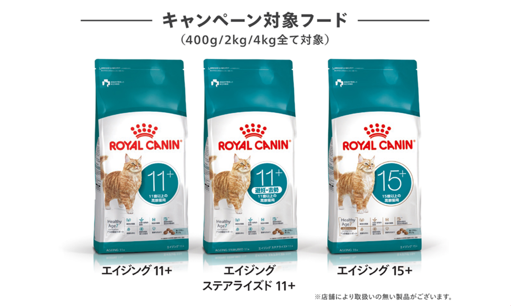 栄養学に基づいて犬と猫の健康を実現する企業(Health Through Nutrition Company)として、プレミアムペットフード および食事療法食を展開するロイヤルカナン ジャポン(本社:東京都港区、社長:日下部 真一、以下、ロイヤルカナン)は、個々の猫のさまざまな違いを考慮して開発された、健康な猫のための毎日の総合栄養食「フィーライン ヘルス ニュートリション(FHN)」のシニア期の猫向けのラインアップである「エイジング11+」、「エイジング15+」および「エイジング ステアライズド11+」の3製品を対象とした「11歳以上の愛猫サポートキャンペーン」を、2026年3月2日より開始いたします。