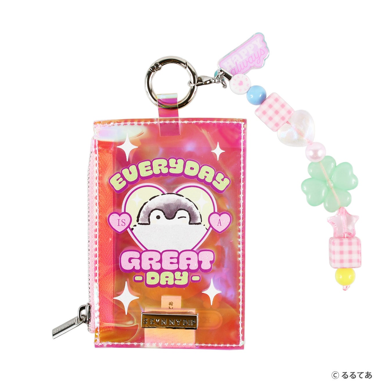 IDカードや交通カード入れとしても使えるカラビナ付きケース。ステッカーチックにグリッターを加えてキラキラにデザインしているため、バッグチャームとしても可愛くお使いいただけます。