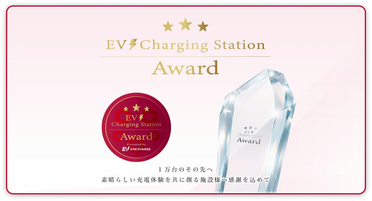 全国のEV充電エネチェンジのスポットの中から、ユーザーの声と多角的な視点をもとに選出した「理想の充電スポット」を表彰する制度として、「EV Charging Station Award(以下、EVCS Award)」を設立いたしました。EVCS Awardは、充電器を設置しているだけでなく、日々の維持管理や利用者へのホスピタリティにおいて優れた取り組みを行い、日本のEVライフを支える施設に感謝を伝え、称えることを目的としています。