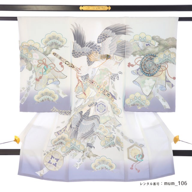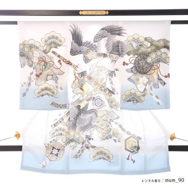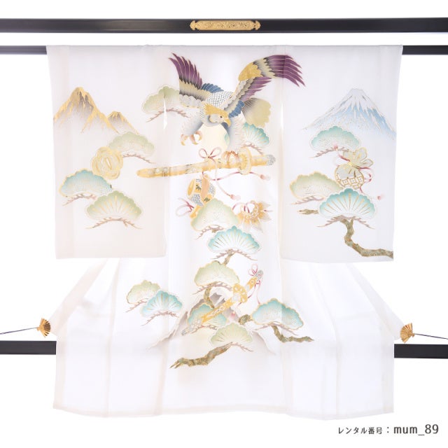 清らかな白地と力強い鷹の文様。お宮参りという特別な日に、家族の想いをそっと包む産着レンタル