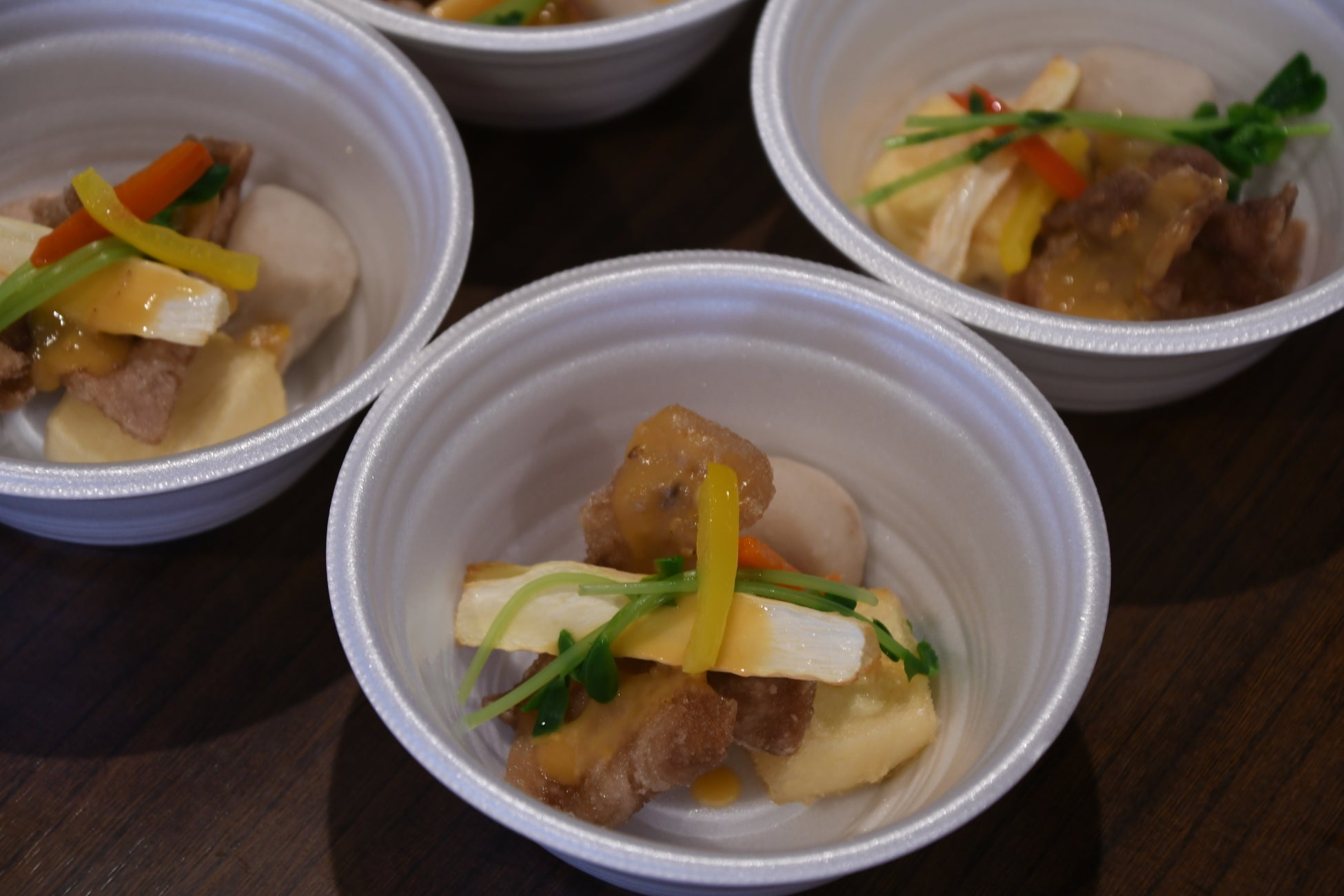 各チェックポイントでは、温泉旅館の料理人をはじめ、「菰人」たちによるおもてなしとして、菰野町産の野菜や肉などを使用した趣向を凝らした料理が提供されます。