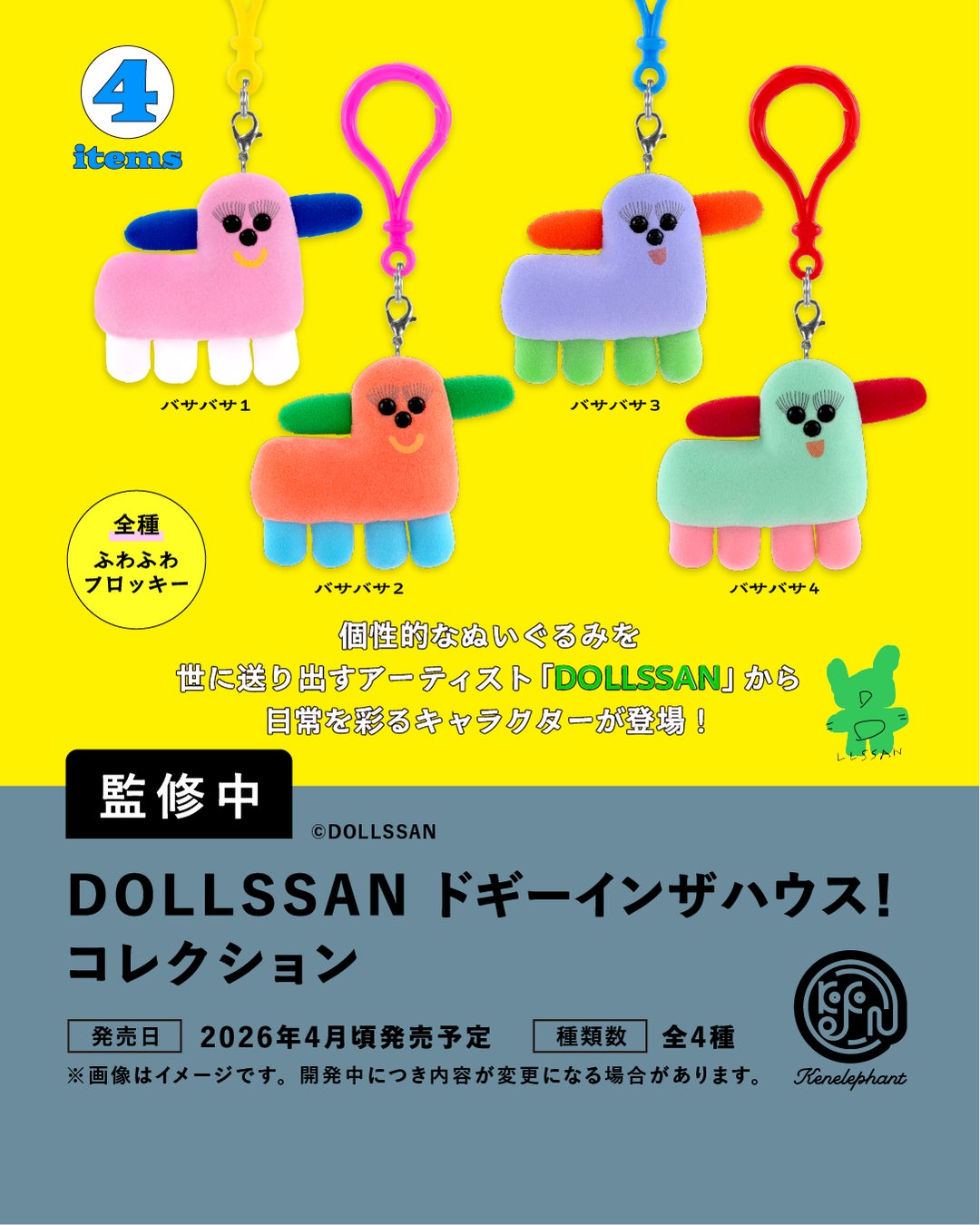 個性的なぬいぐるみを世に送り出すアーティスト・DOLLSSANからパサパサまつげがチャームポイントのわんわんが登場!ケンエレファントとのコラボは3回目となります。
