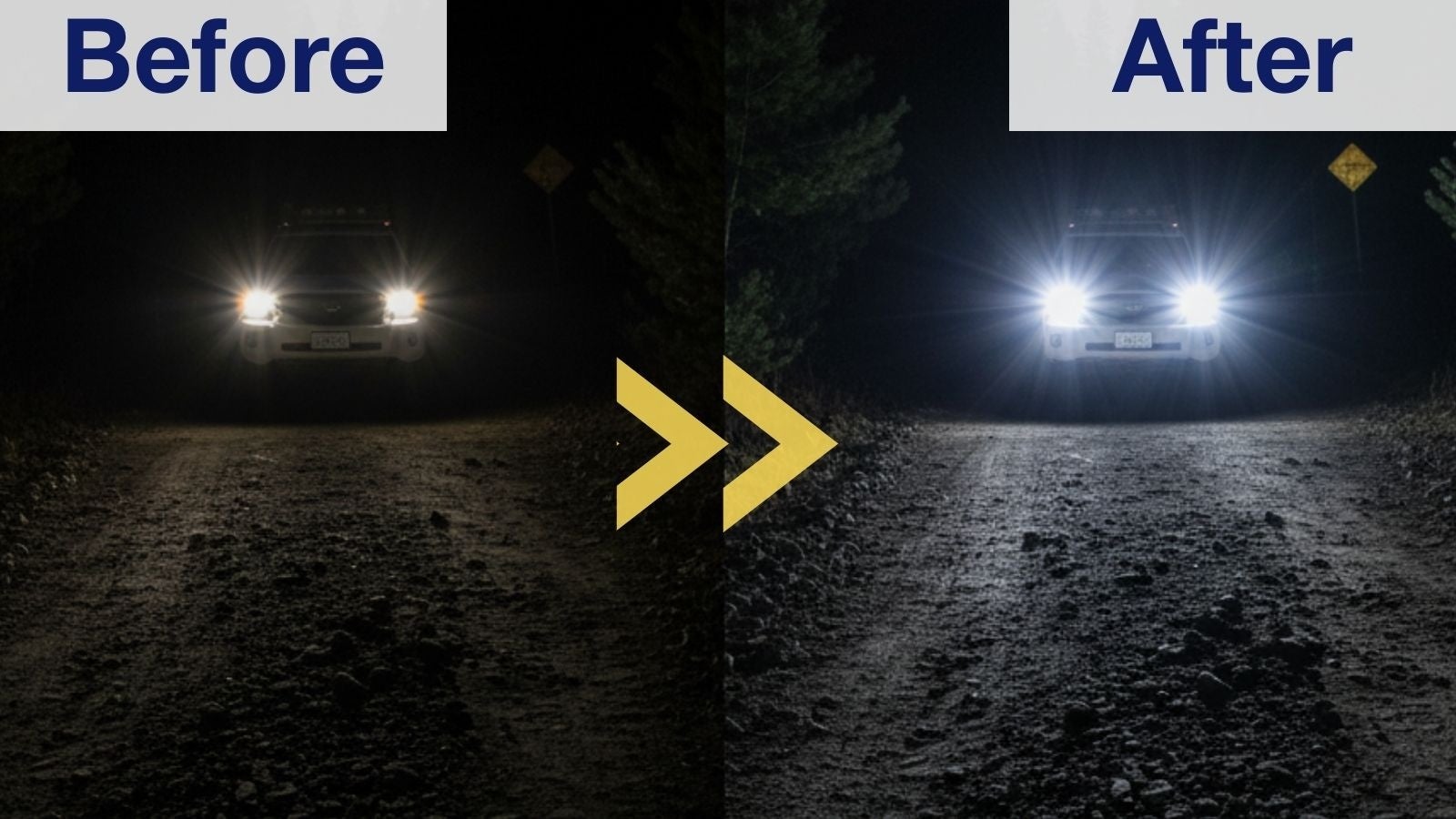山道や街灯のない道路では、純正のハロゲンランプなどでは光量が不足しがちです。 視認性を高めるLEDヘッドライトへ交換することで、路面の状況や障害物を早期に発見し、安全なドライビングをサポートする方法を解説しています。