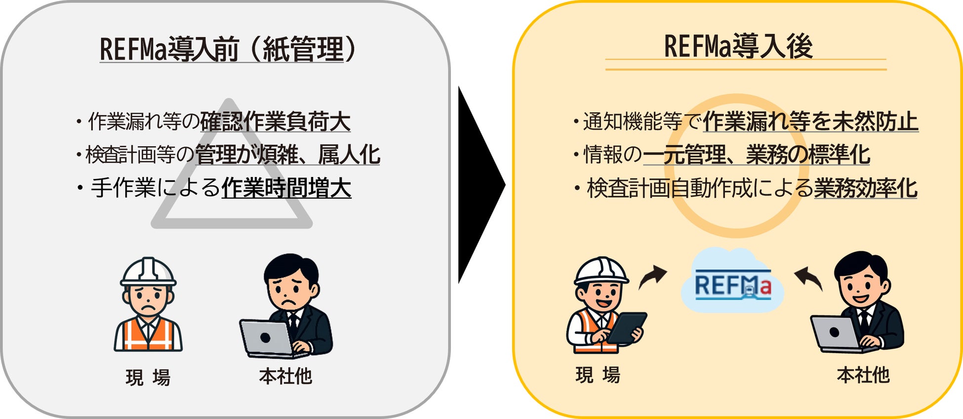 ■鉄道電気設備保守管理システム REFMa導入前後のイメージ