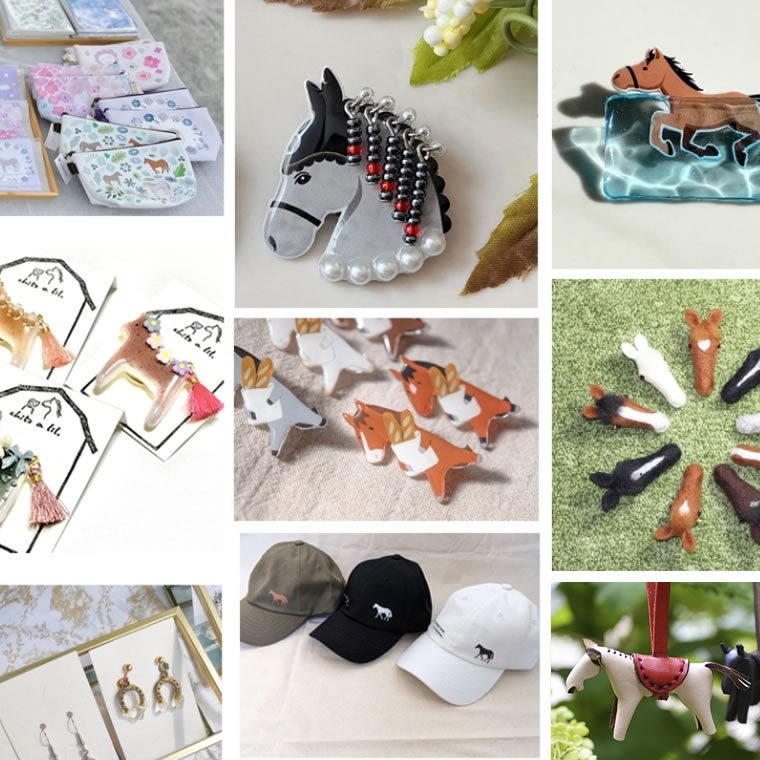「馬雑貨マルシェ」では、アクセサリー・雑貨・ファッション・ステーショナリーからスイーツまで、様々なジャンルの馬や馬具をモチーフにしたハンドメイド作品が一同に会します。