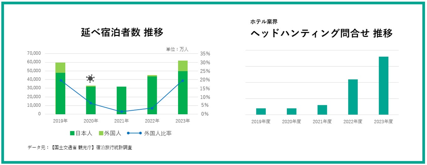 【最新:業界別 人材動向レポート】インバウンド需要で活気を取り戻すホテル業界。開業ラッシュで即戦力人材の需要高!ヘッドハンティング依頼がコロナ前の9倍に増加