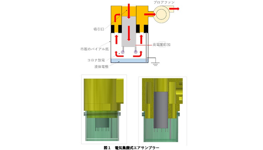 2019年末に中国・武漢で発見されたSARS-CoV-2は瞬く間に世界に拡がり、パンデミックを引き起こしました。パンデミックを最小限に抑えるためには、空気中に浮遊するウイルスの挙動を迅速に調査し、適切な感染予防策を提案することが不可欠です。本研究では、溶液を捕集部とした電気集塵式エアサンプラーを開発し、空気中に浮遊するSARS-CoV-2の濃度の調査を行いました。このエアサンプラーは、従来のフィルター式と異なり、以下のような特長があります。