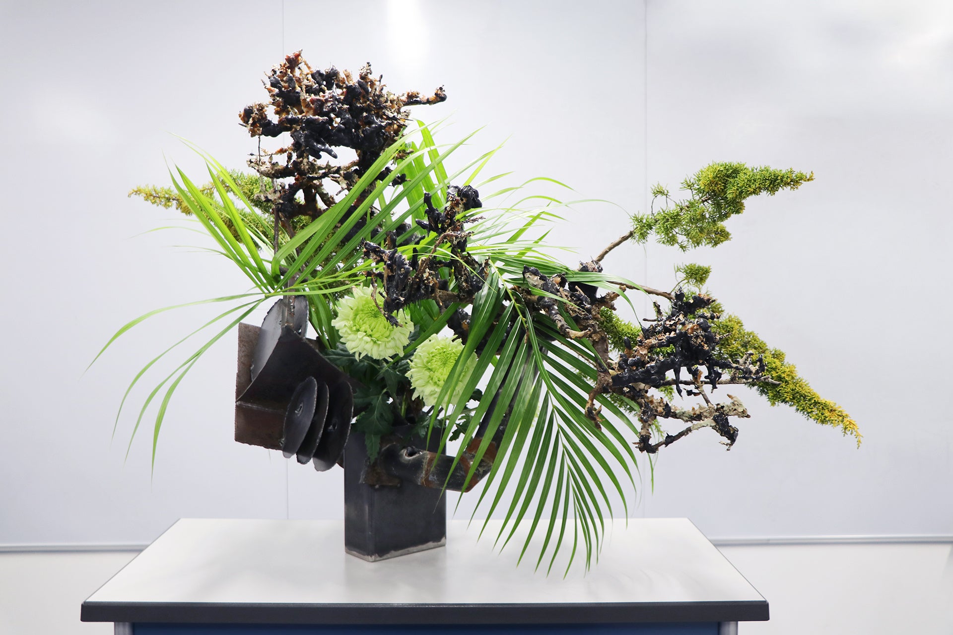 また、時代とともに変化してきた草月のいけばなは、それぞれのご家庭で楽しむことはもちろん、ウインドーディスプレーや舞台美術など、社会のあらゆる空間に植物表現の美と安らぎをもたらしています。