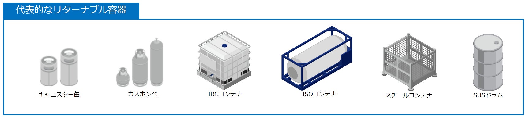 製造現場では、材料や商品の運搬のために、キャニスター缶、ガスボンベ、IBCコンテナ、SUSドラムなど多様なリターナブル容器が使用されています。容器保有数が5万点を超える企業や、容器使用による1日の出荷数が1000点を超える企業も存在します。 これらは工場から出荷後、物流拠点や顧客の拠点へと複雑に動き回るため、移動履歴や在庫管理が難しい資材です。