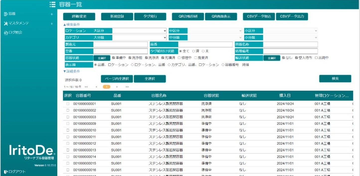 「IritoDe🄬リターナブル容器管理」は金属容器にも対応し一括管理を実現