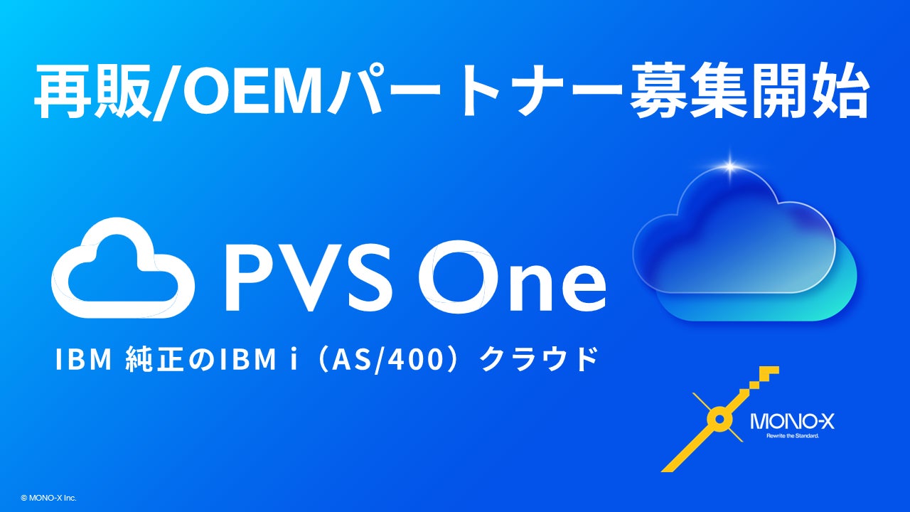 株式会社MONO-X(本社:東京都港区、代表取締役:藤井星多、以下 MONO-X)は、IBM i (AS/400)のクラウド移行・運用支援を行う「PVS One」のサービス拡大に伴い、再販/OEMパートナーの募集を開始いたしましたことをお知らせいたします。