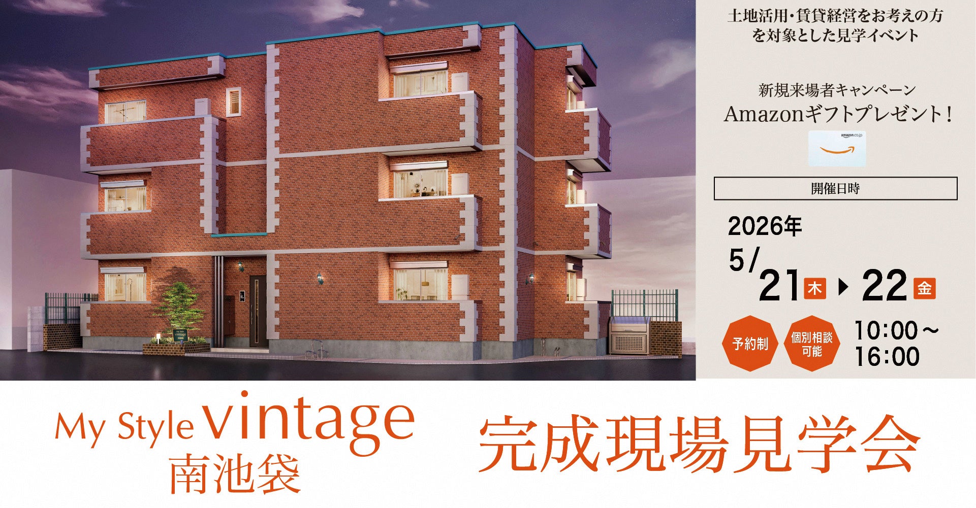 【土地活用・アパート経営をお考えの方向け】アパート完成現場見学会を5月21日・22日に南池袋エリアで開催|新規来場でAmazonギフトプレゼント!