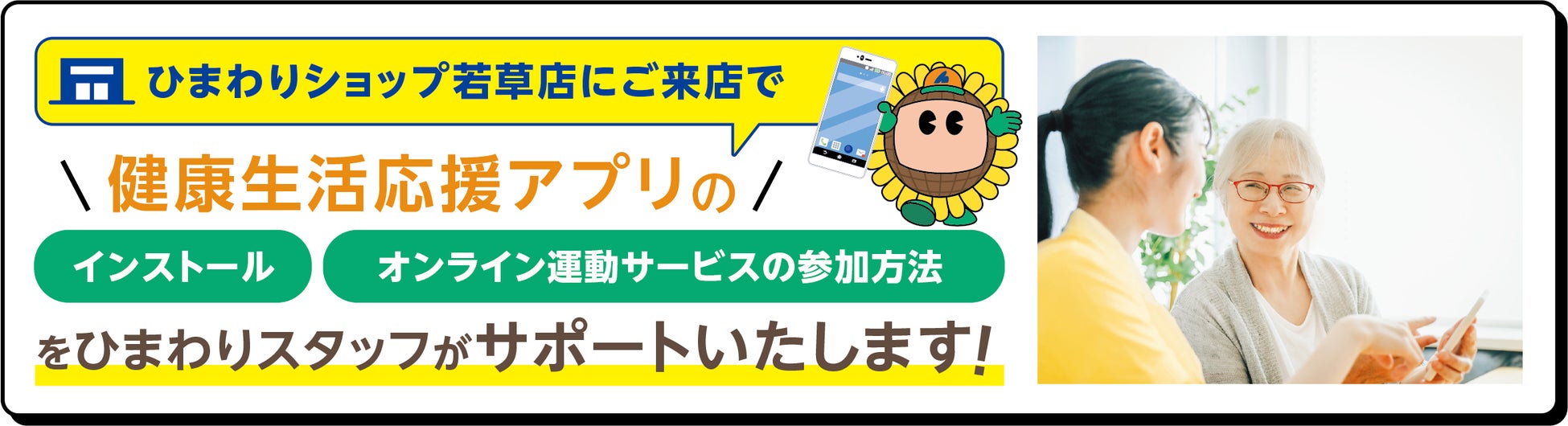 「ひまわりショップ若草店」は、対面接点を活かし、本協定に関連したスマホの使い方やオンラインの手続き・サービス利用の方法を対面でご案内します。デジタル機器・サービス活用に対して困った際に相談ができる窓口としての役割を担います。ひまわりネットワークは、地域の通信事業の担い手として、デジタルデバイド(情報格差)の解消を目指すテレビ番組「ゼロから始めるケーブルスマホ講座」や対面でのスマホ教室の開催、高齢者のニーズやライフスタイルに合わせたICT利活用支援、健康増進や趣味に関するプログラムを提供いたします。