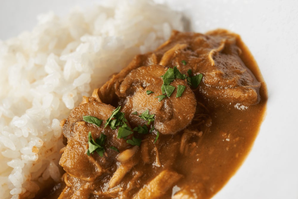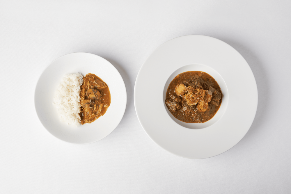 茨城県ゆかりのシェフら4人が月替わりで創作カレーの商品をリリース。ラスト第三弾は「奥久慈しゃもと美浦マッシュルームのカレー(グルテンフリー)」「常陸牛スネ肉と自然薯のスパイスカレー」を販売。