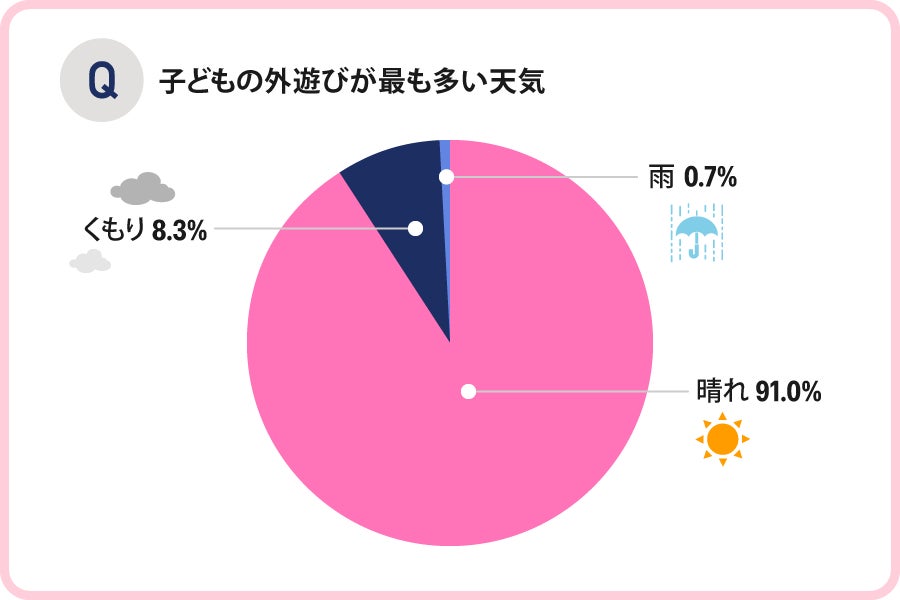 子どもの外遊びが最も多い天気は「晴れの日」で、91.0%という結果となりました。