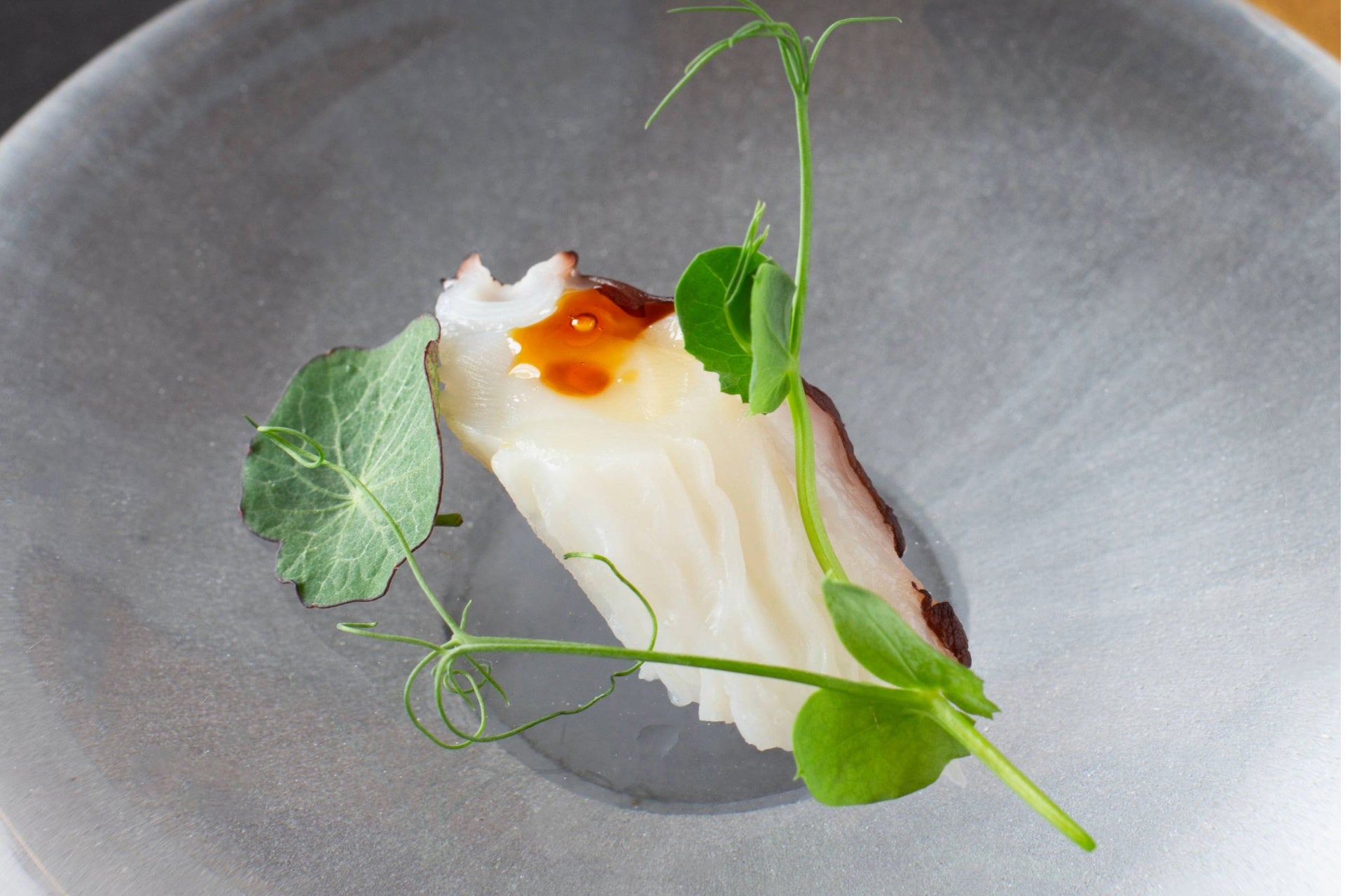 低温調理した帆立貝柱と椎茸 オリーブタプナード添え
