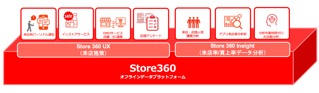 今回STORE360ブランドから、来店施策の「STORE360 UX」、オフラインデータAI分析の「STORE360 Insight」の2サービスがリリースとなり、小売事業会社は容易に顧客体験向上サービスの提供が可能となり、その対価としてデータ取得して分析時間ゼロのAI分析でPDCAを回す新しいデータ活用体験が可能になります。
