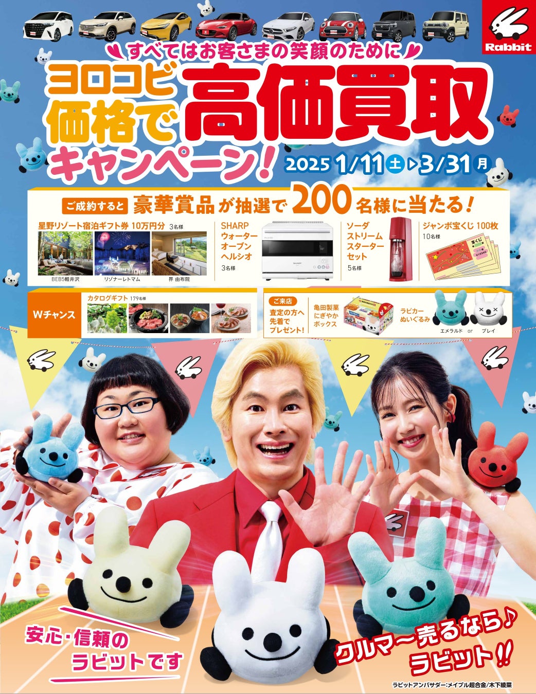 「クルマ~売るなら~ラビット♪」クルマ買取・販売のラビットヨロコビ価格で高価買取キャンペーン!実施中!