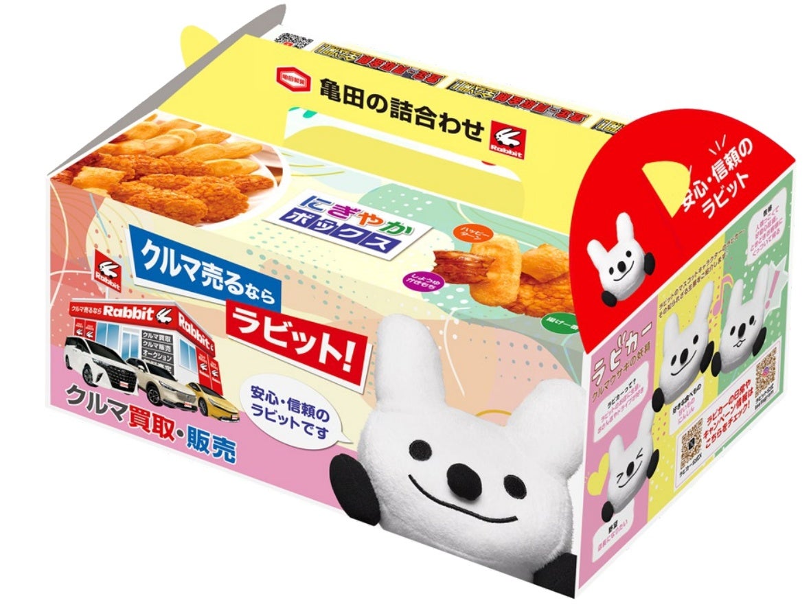 ご来店査定されたお客様には「ラビカーぬいぐるみ」の「エメラルド」もしくは「プレイ」、または、亀田製菓詰め合わせをプレゼントいたします。