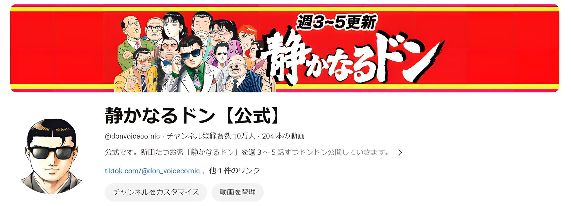 大人気マンガ『静かなるドン【公式】』YouTubeチャンネルの登録者数が10万人を突破