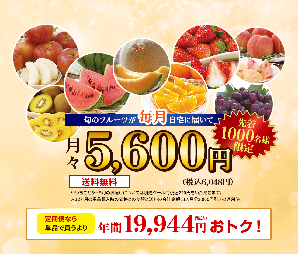 【新発売】フルーツのプロが厳選した旬の果物を毎月お届けする「旬のフルーツ定期便」を2022年1月から販売開始。各地の生産者が心を込めて作ったジューシーなフルーツを一番おいしい時期を見極めて毎月お届け。