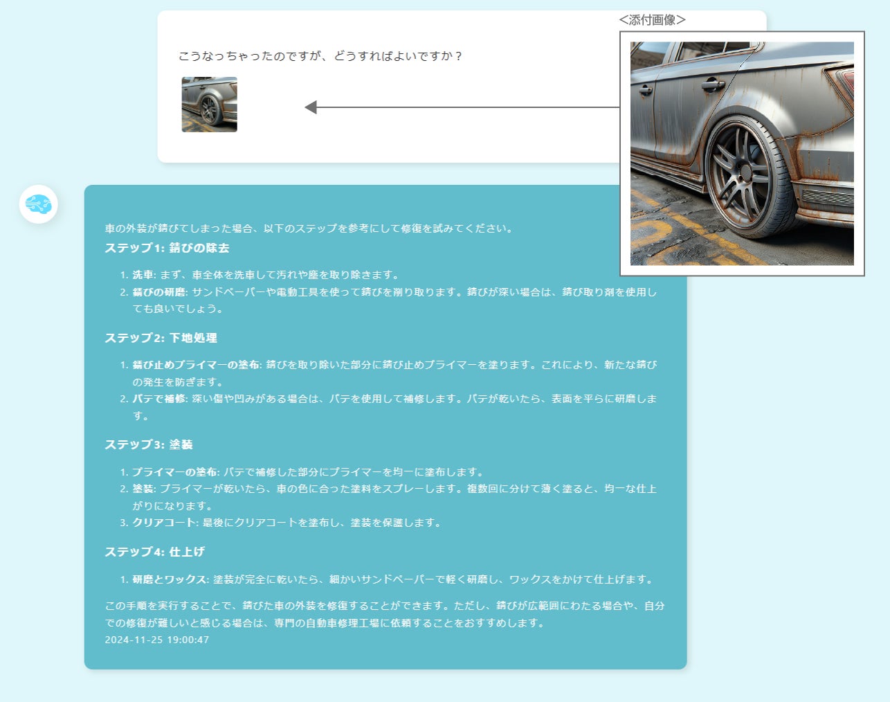 使い方は簡単。Safe AI Gateway の利用者画面で質問をする際に画像を添付して質問するだけで、生成AIが自動で画像を認識し、質問に対して回答を行います。