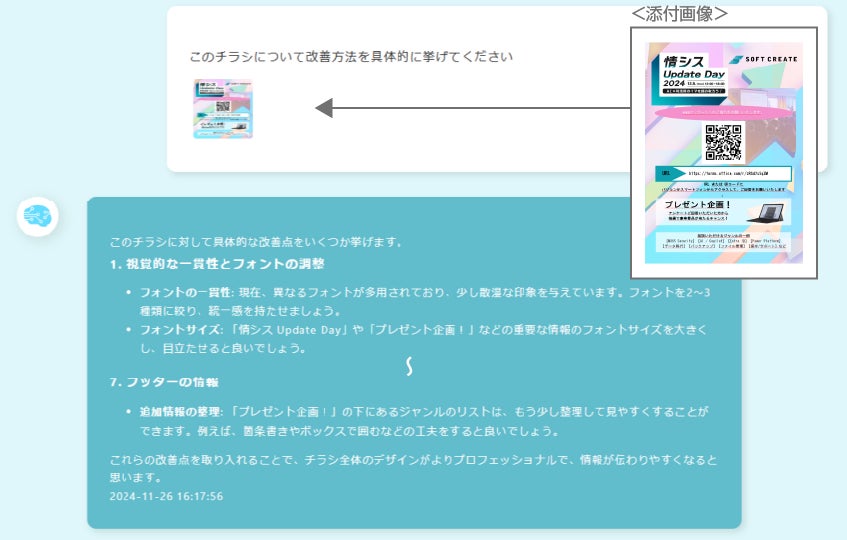 プレゼン資料やチラシなどの改善点を具体的に挙げることが可能。