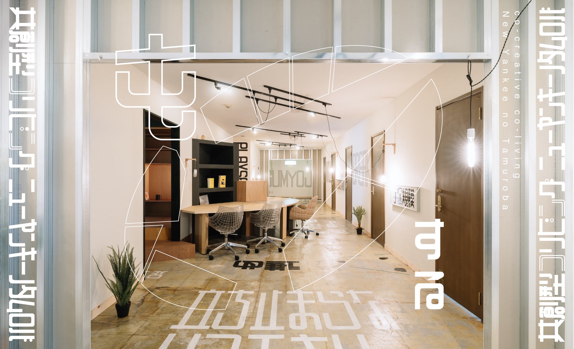 神奈川県横浜市南区・京急本線「弘明寺駅」から徒歩3分。GM2ビルの1フロア(397㎡)をリノベーションした、創造性を刺激する仕掛けが散りばめられた共創型コリビング「ニューヤンキーノタムロバ」。
