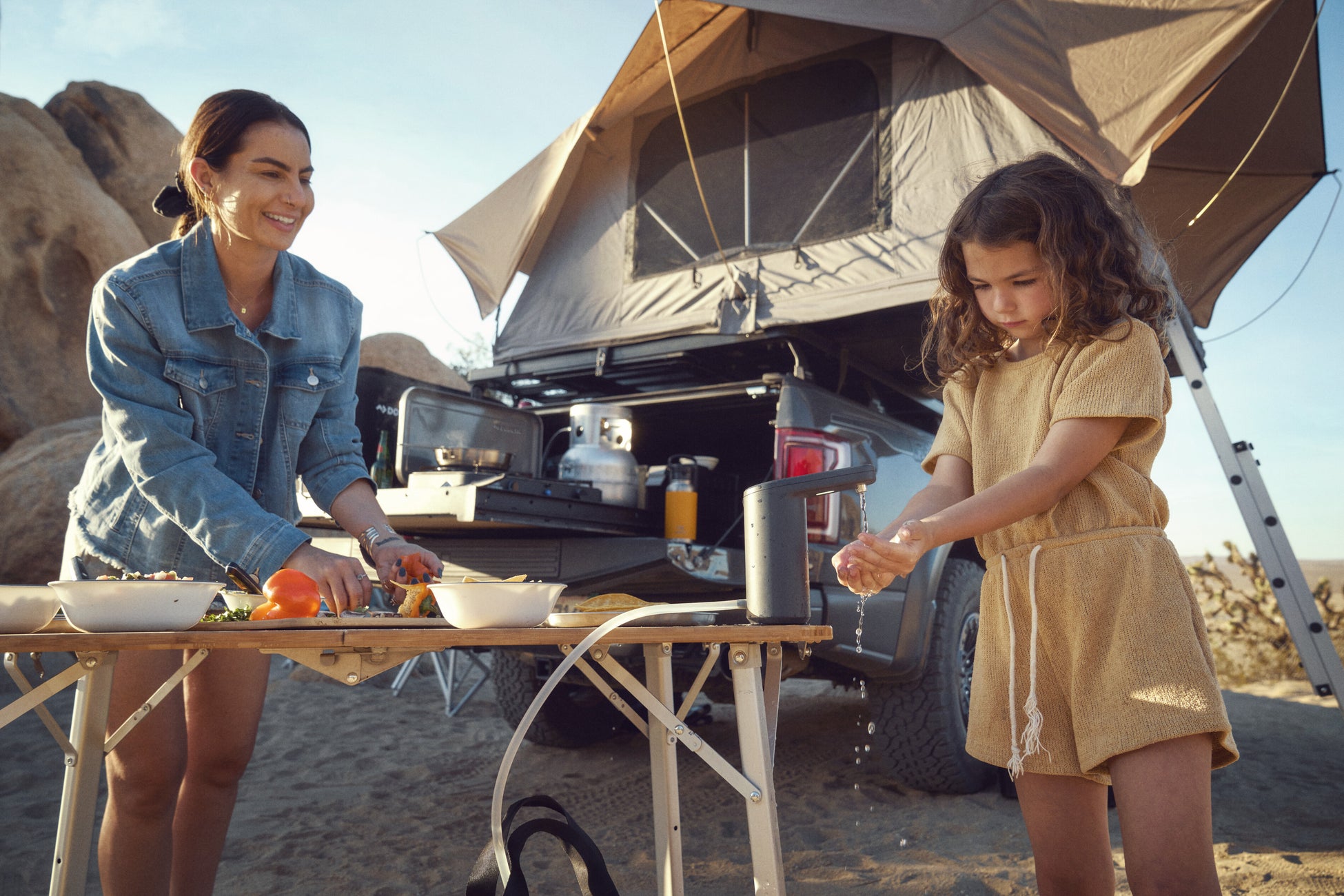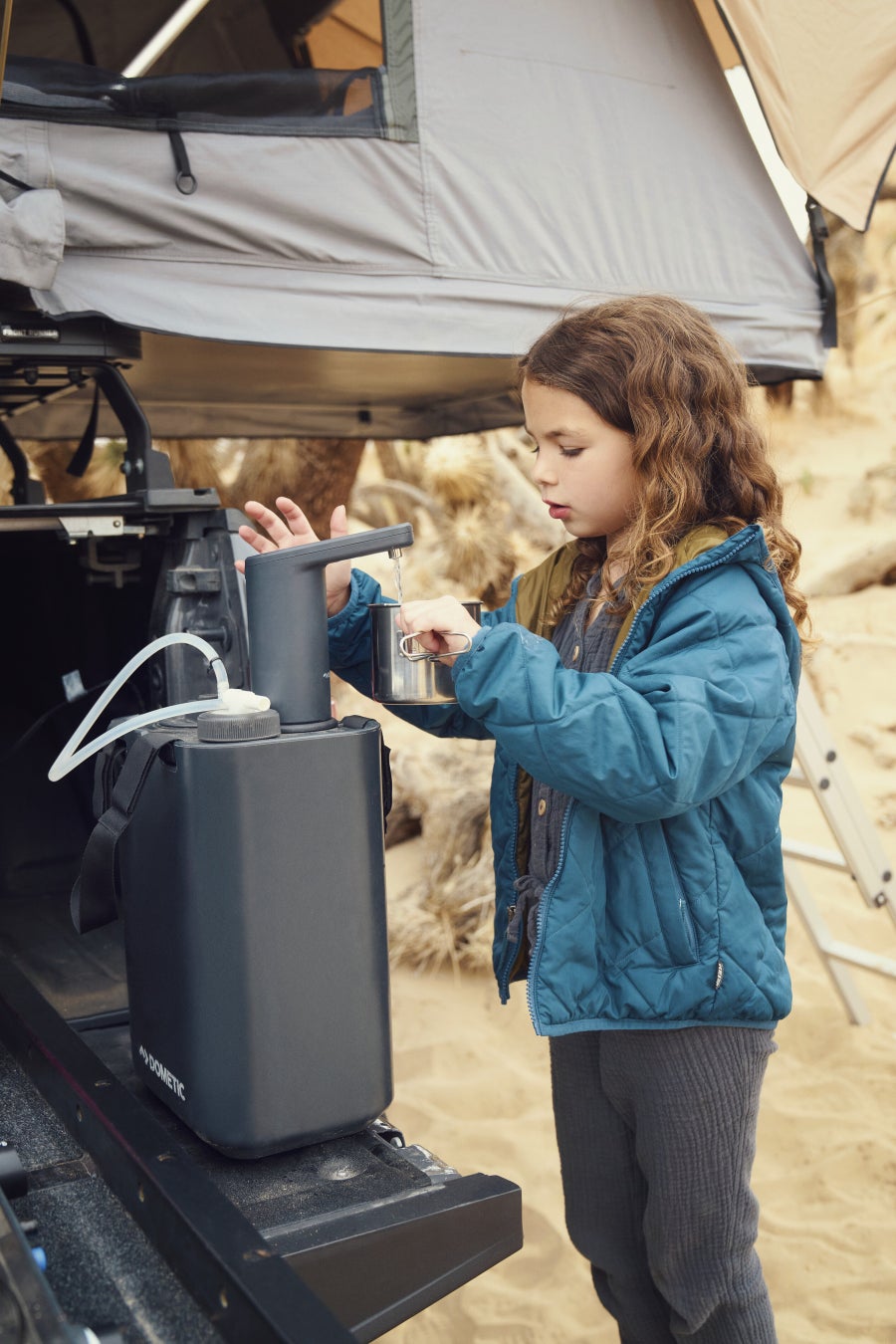 アウトドアでは、食器を洗ったり、お湯を沸かしたり、手を洗ったり、歯を磨いたりと、“水” を使う場面が多くあります。 ポータブル電動給水栓 RCN-WF とウォータージャグ HYD-J11 を組み合わせることで、便利で安全、さらに衛生的に水を供給・使用することが可能です。ポータブル電動給水栓の給水ホースとウォータージャグの給水口はぴったりと接続ができるため、落ち葉や埃の混入を防ぎ、アウトドア環境でも清潔に水を利用できます。キャンプや車中泊など、さまざまなシーンで安心して快適に水を使える頼もしいパートナーです。アウトドアでも安全・便利・衛生的な “水” を、いつでも手元で。RCN-WFとHYD-J11が、快適なアウトドアライフを支えます。