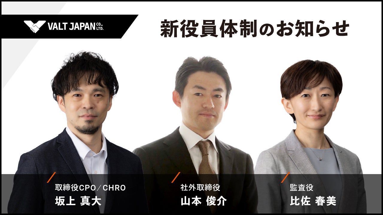 VALT JAPAN株式会社(読み:ヴァルトジャパン、本社:東京都千代田区)は、下記のとおり役員の新体制について決定いたしましたので、お知らせいたします。