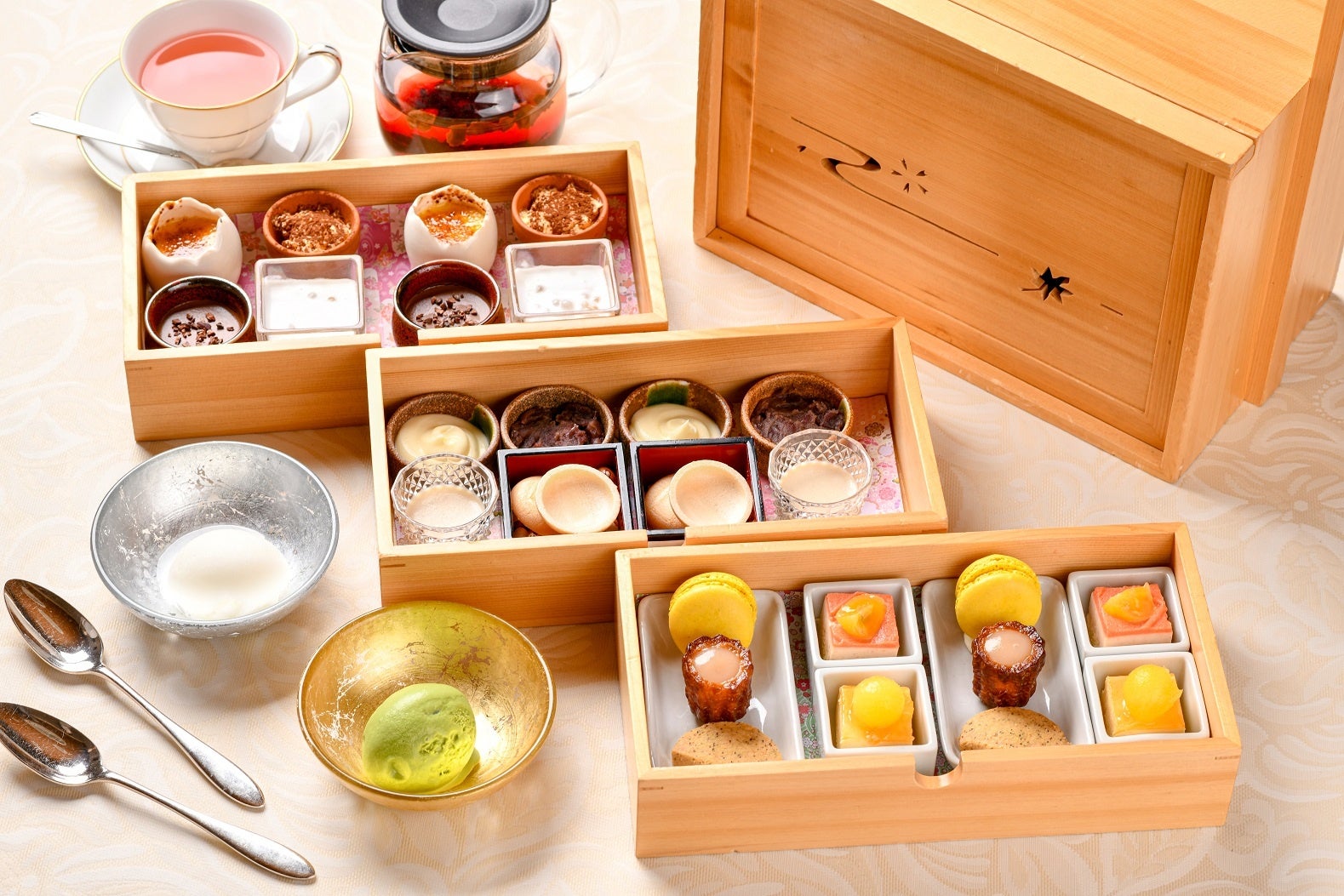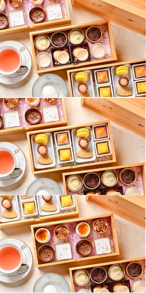檜の岡持ちに詰め込まれた多彩な選べるワゴンデザート