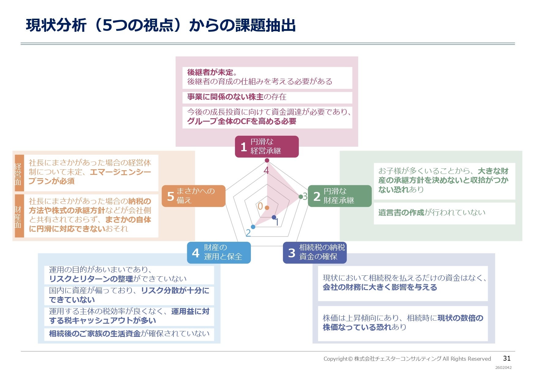 それに伴い、企業オーナーが抱える悩みは、単なる「節税」から「高度な資本政策」「グループ管理体制の構築」「親族間での公平な財産承継」へと複雑化しています 。