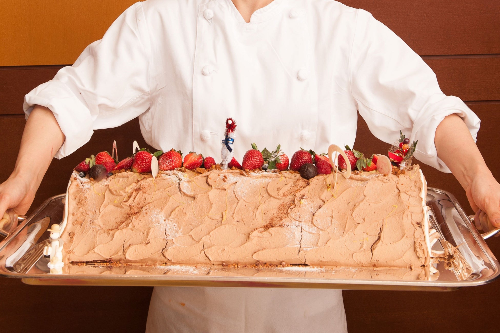 クリスマス期間の6日間限定で例年大人気のホテル特製「ジャンボブッシュドノエル」のお取り分け