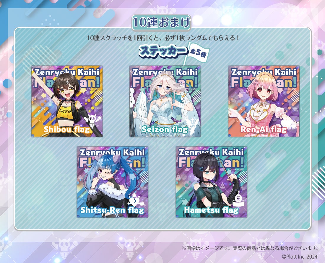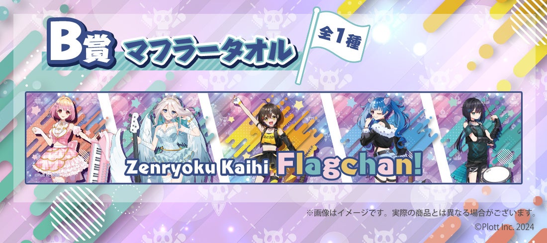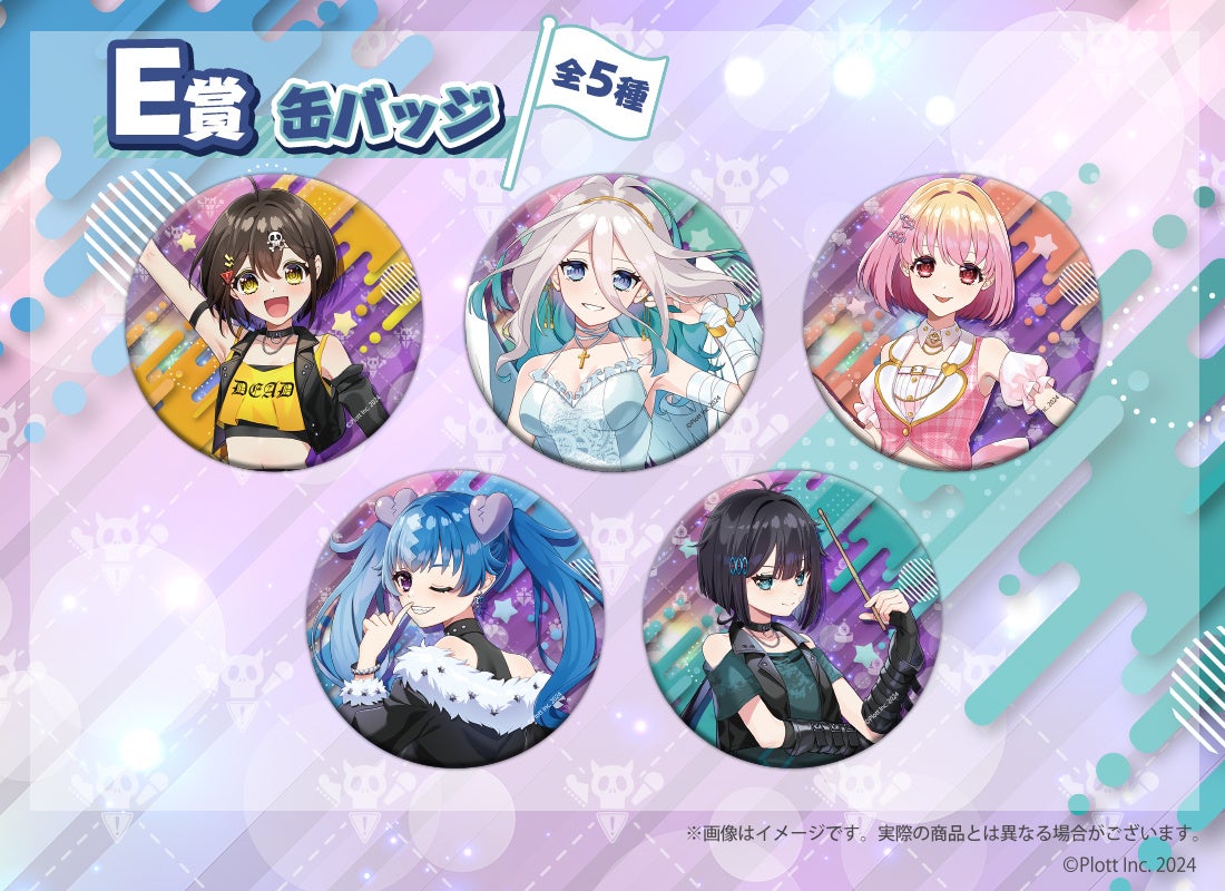 今回の第3弾はPlott社にて「全力回避フラグちゃん!」の登場キャラクターをガールズバンド風に描き下ろした新規イラストのアクリルスタンドや缶バッジなどが当たります。