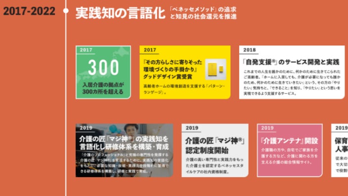 ベネッセスタイルケアのこれまでの歩みがわかる「HISTORY」