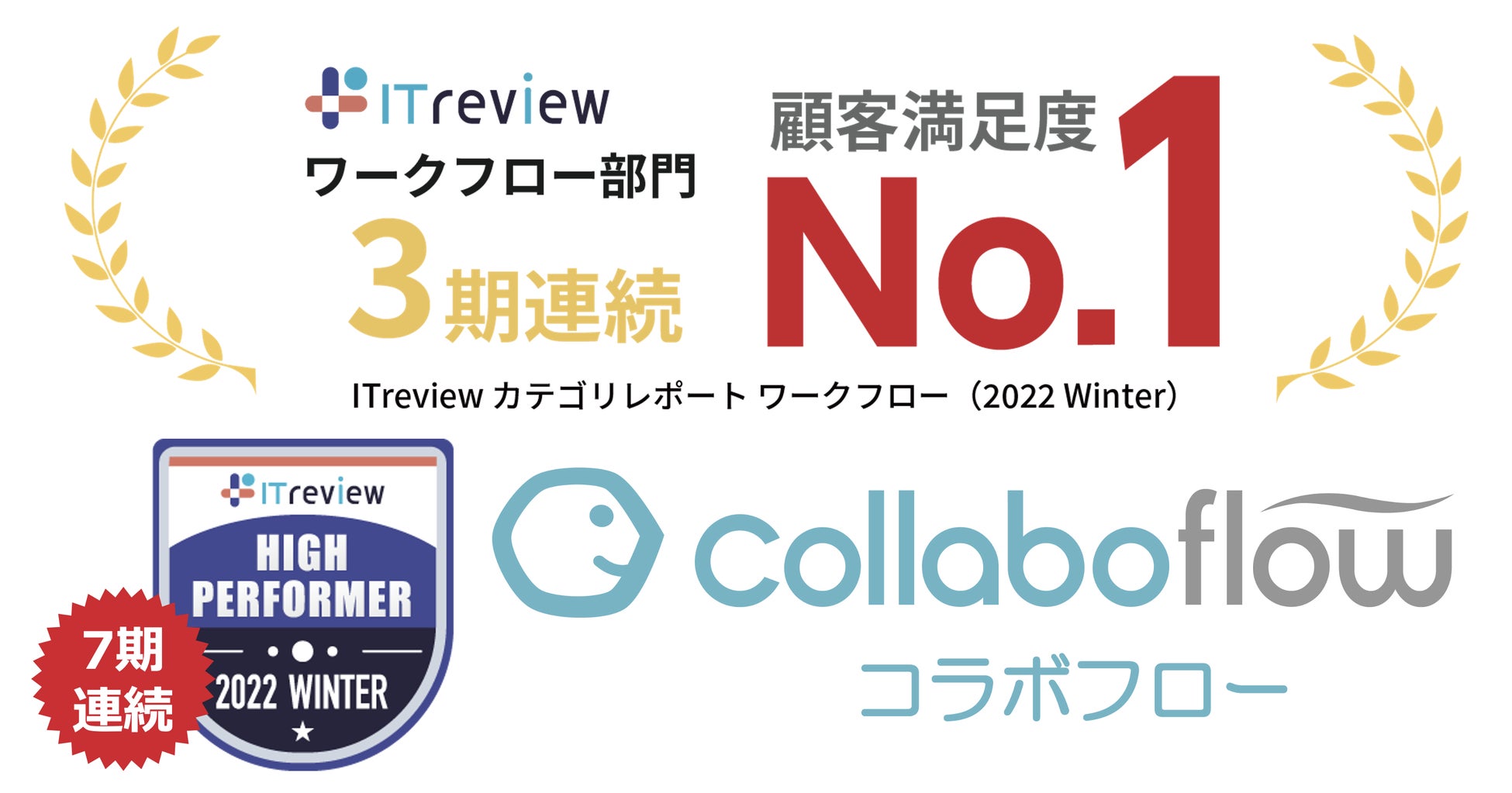コラボフローが「ITreview Grid Award 2022 Winter」ワークフロー部門で7期連続ハイパフォーマー受賞、3期連続顧客満足度No.1
