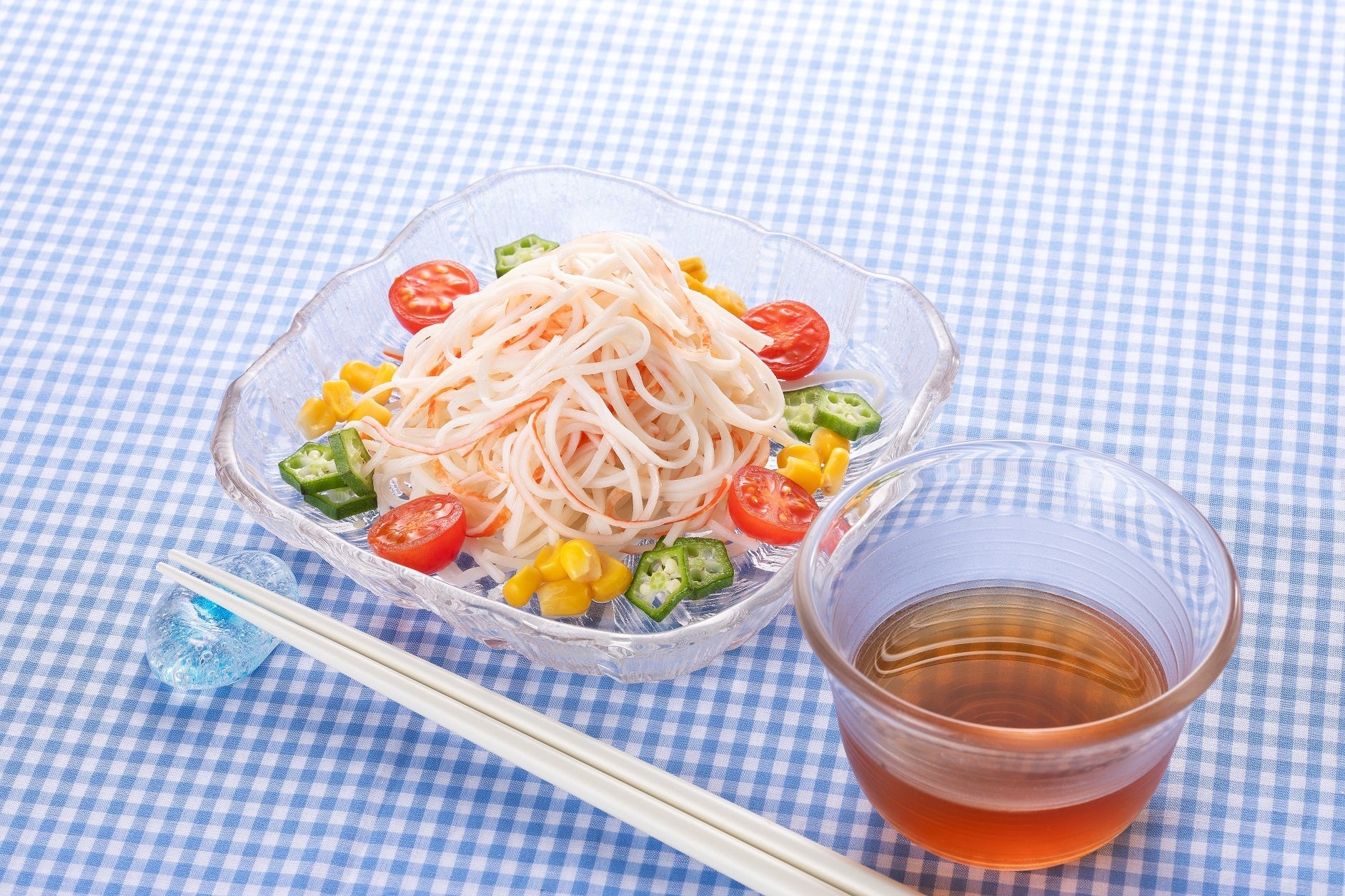 ほぐすだけで簡単に麺として楽しめるカニ風味かまぼこ。