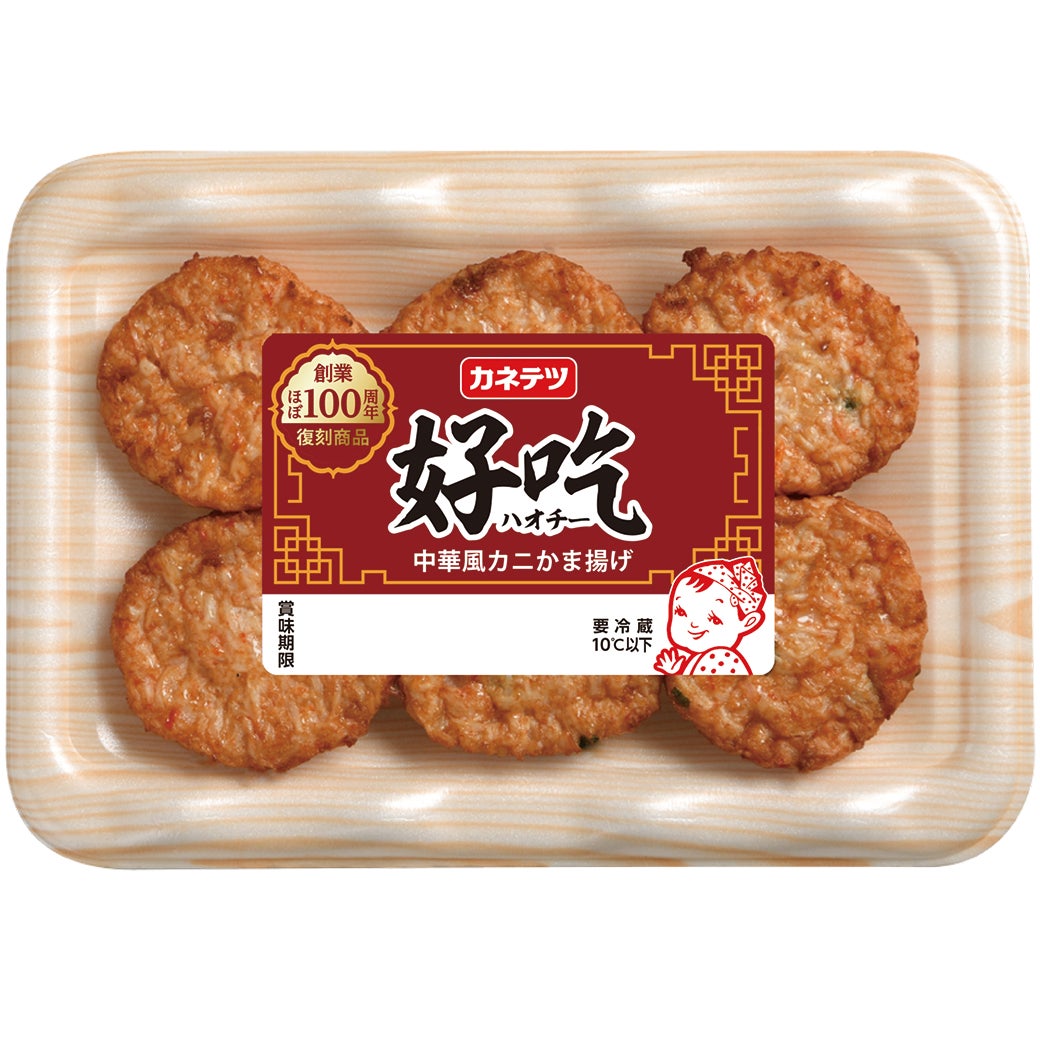 約30年振りに復刻発売!カネテツデリカフーズの社員が選んだ「もう一度食べたいカネテツ商品」第1位商品を令和風にアレンジしてリバイバル。ごま油の香ばしさが、カニかまと野菜(玉ねぎ、キャベツ、青ネギ)の旨味を引き立てる、ひとくちサイズのカニかま揚げ。味わいはもちろん、パッケージも当時の面影を残したものに仕上げました。
