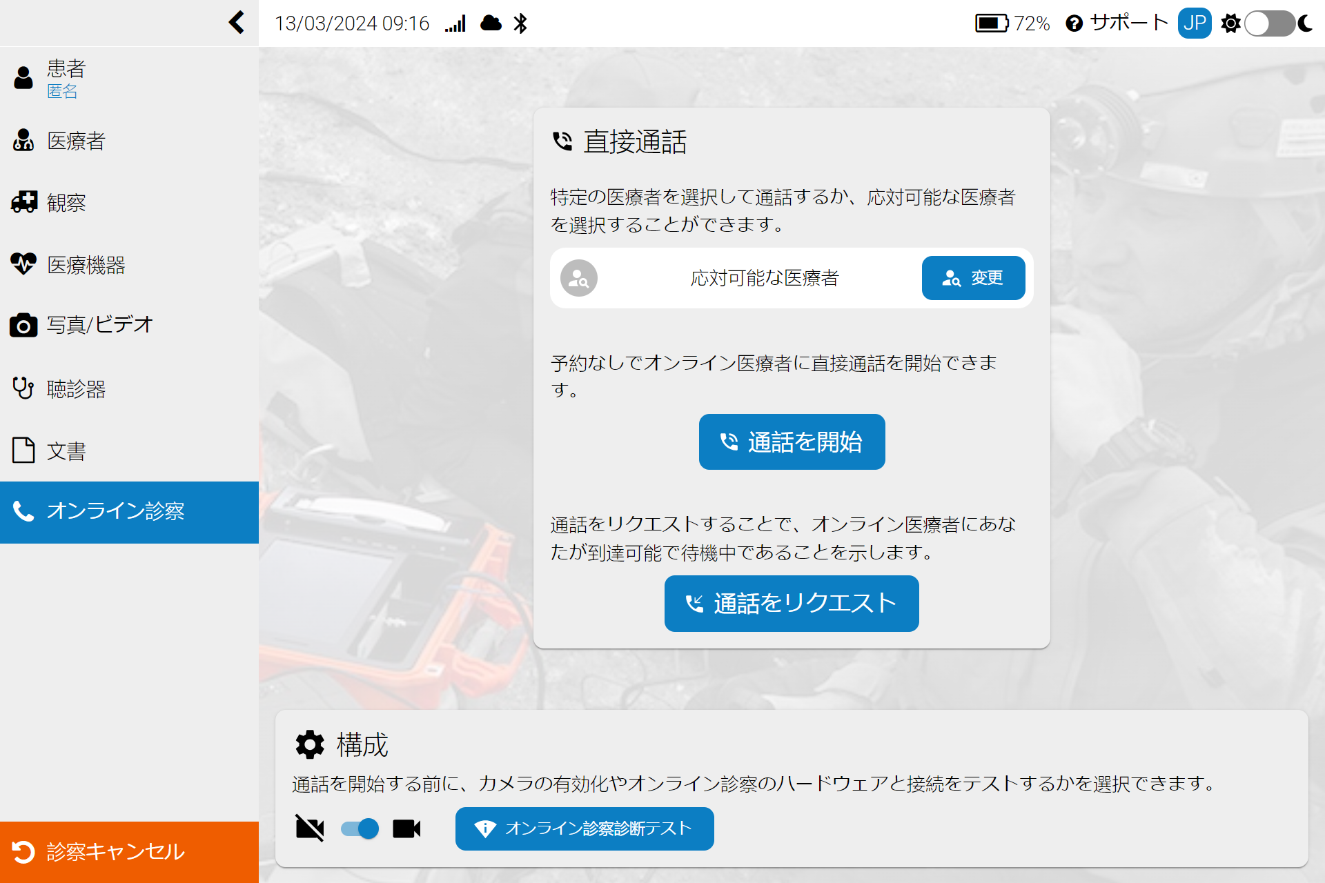 「メディキャプチャ」は、フランス軍でも採用され過酷な環境で使用することを想定して作られており直感で利用できる洗練されたUIを備え、医師はネクステートなど、さまざまな医療機器から集めた客観的なバイタルデータを確認したうえでオンライン診療を開始する事ができます。元々、外洋船や航空機など通信環境が十分でない低帯域の通信環境下でも稼働することを想定されており、中山間地域や離島などでの利用は無論、災害時の医療支援にも最適です。また、HL7 FHIR規格に対応する初のオンライン診療ツールであり、同規格に対応するクラウド型電子カルテとのシームレスな連携も可能であり、日常の訪問診療や訪問介護、往診などでも活用可能になります。