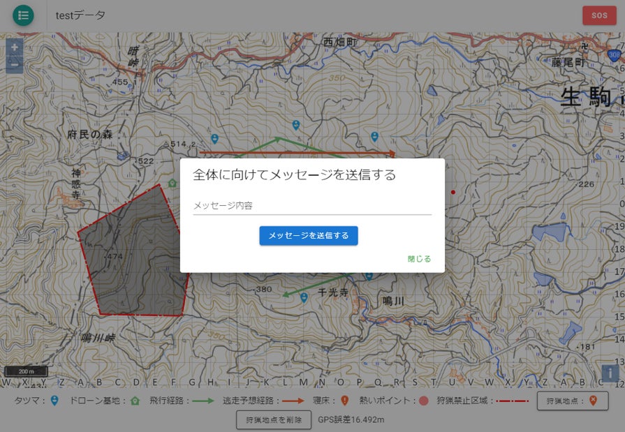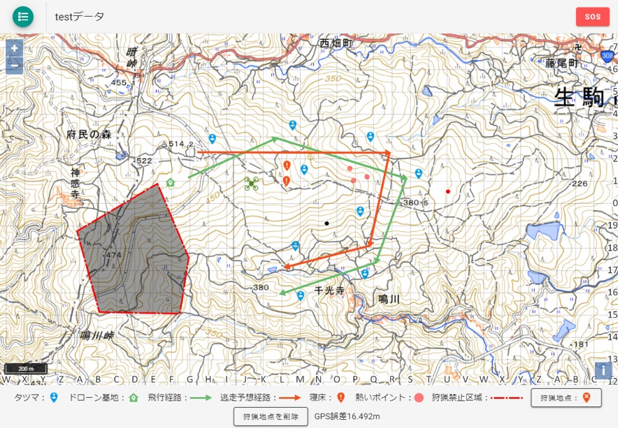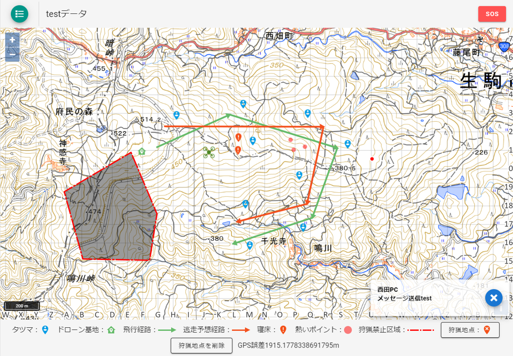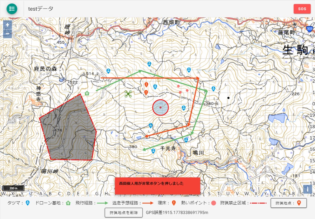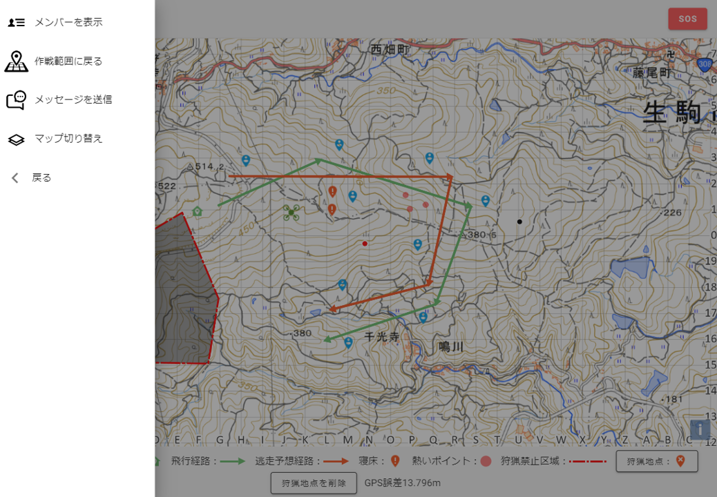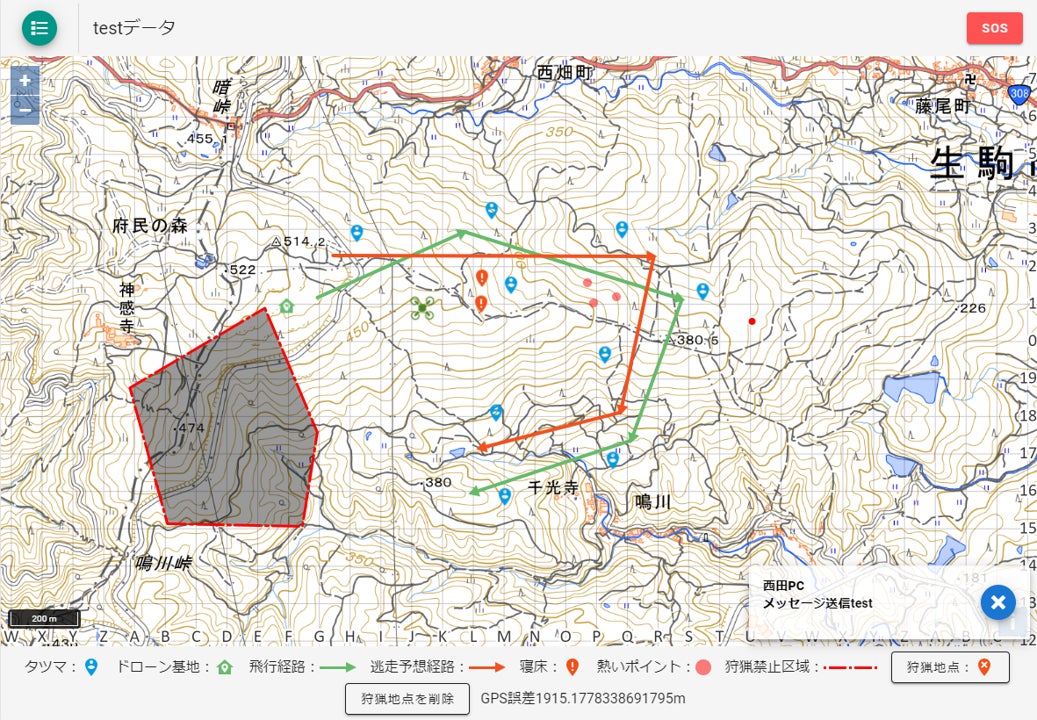 ・猟師とハンティングドローン等の動きをリアルタイムで把握し、安全で効率的な狩猟を実現します。