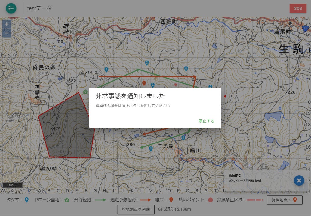 作戦遂行画面です。非常事態発生時には、グループ内に通知することができます。