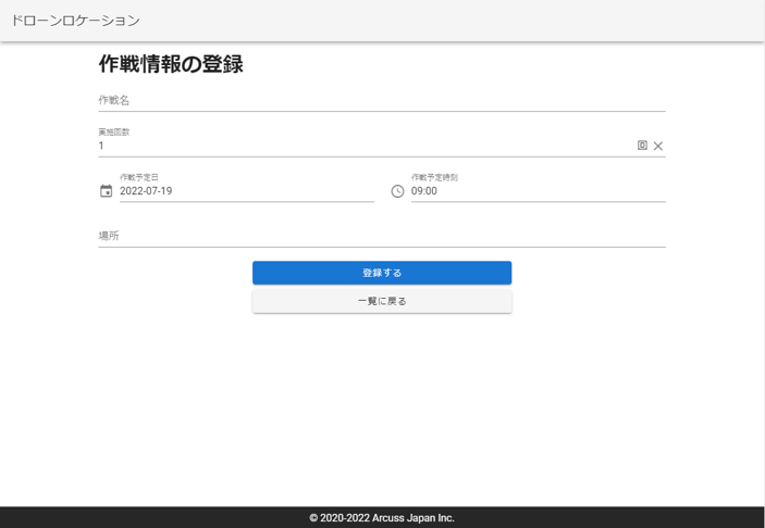 作戦登録画面です。作戦の基本情報を入力し、作戦を作成します。