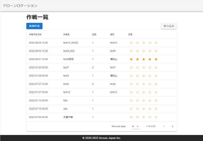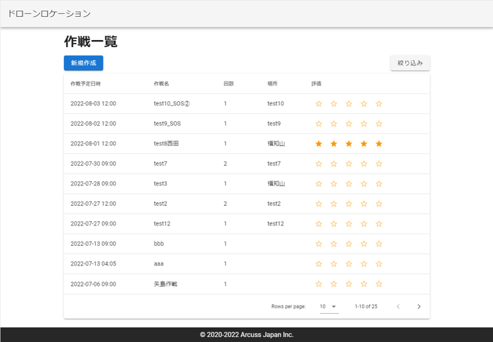 作戦一覧画面です。グループ内の登録されている作戦を確認することができます。