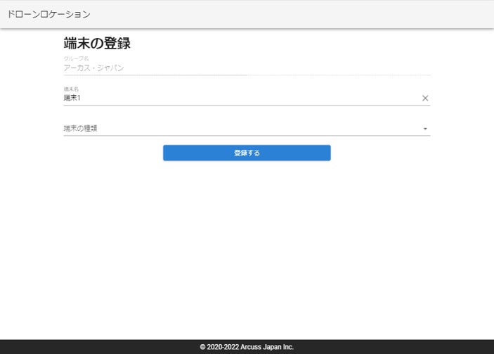 端末登録画面です。グループや端末名、種類の登録を行います。