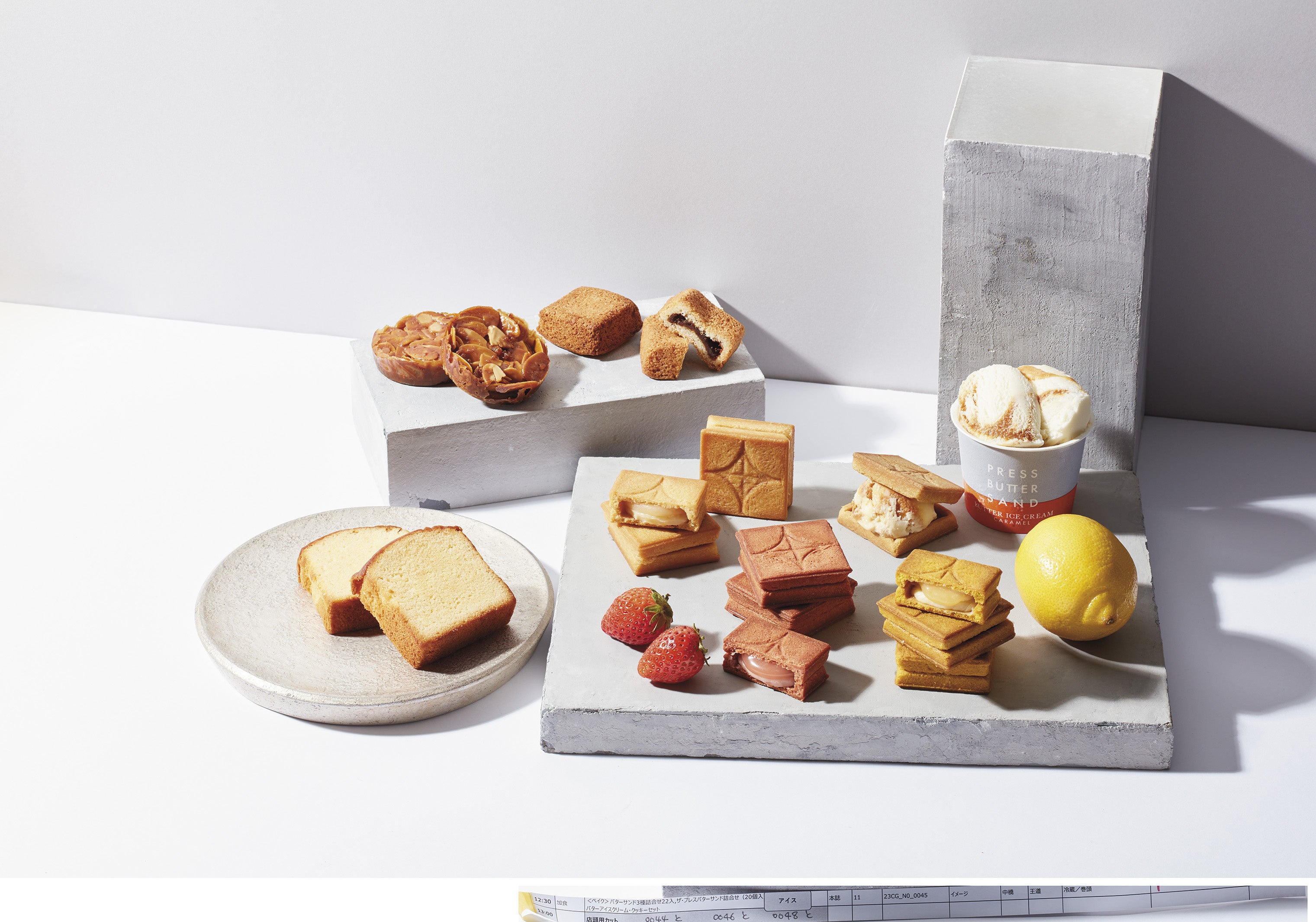 バターサンドの専門店PRESS BUTTER SANDのバタークッキーと、キャラメルをたっぷり練り込んだコク深いバターアイスのセット。クッキーにアイスをはさむことでアイスサンドを楽しめる新感覚のスイーツです。