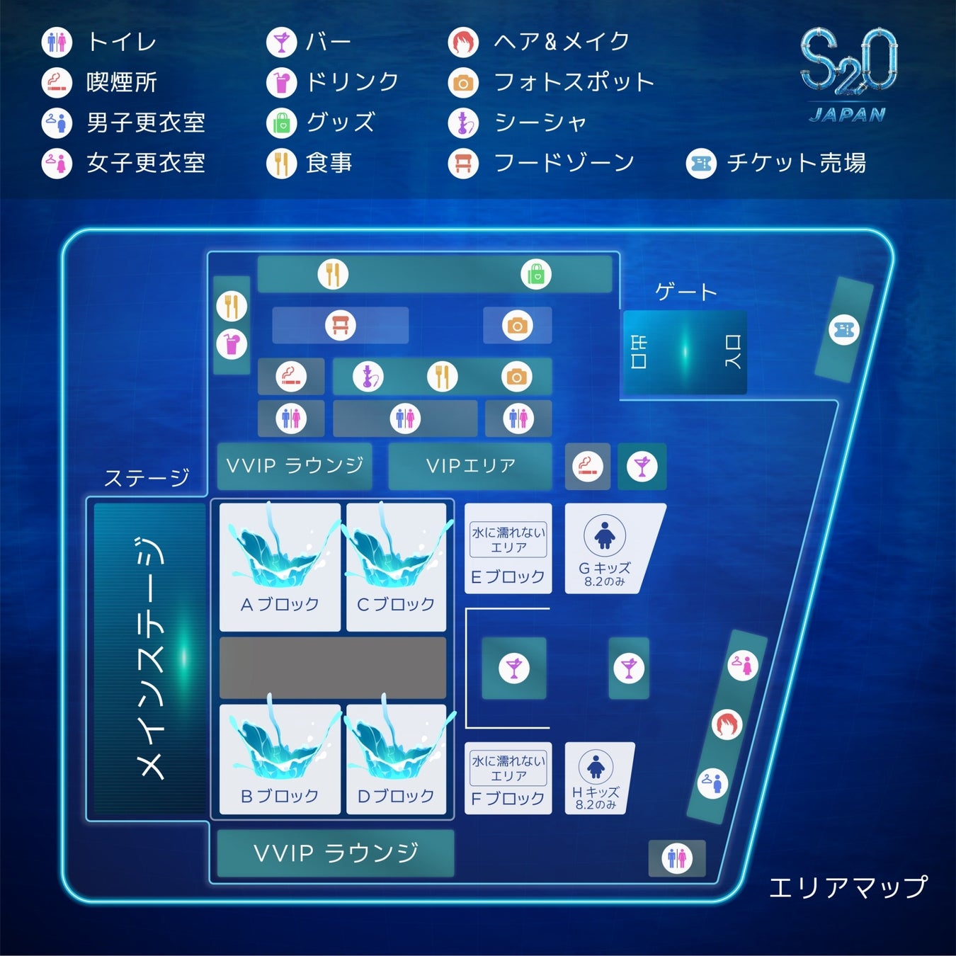 ■チケット料金(税込)一般、VIP、KIDSチケットはS2Oオリジナル防水携帯ケース付き 一般 12,800円(定価:14,800円) VIP 24,800円(定価:28,800円)*VIP特典・・・水に濡れないエリアです。 KIDS 7,800円 (定価:9800円) *6歳以上12歳以下、入場エリア指定あり 水に濡れないエリア後方限定 8,800円(定価:9800円) *水に濡れないエリア・入場開始は16時です。 |