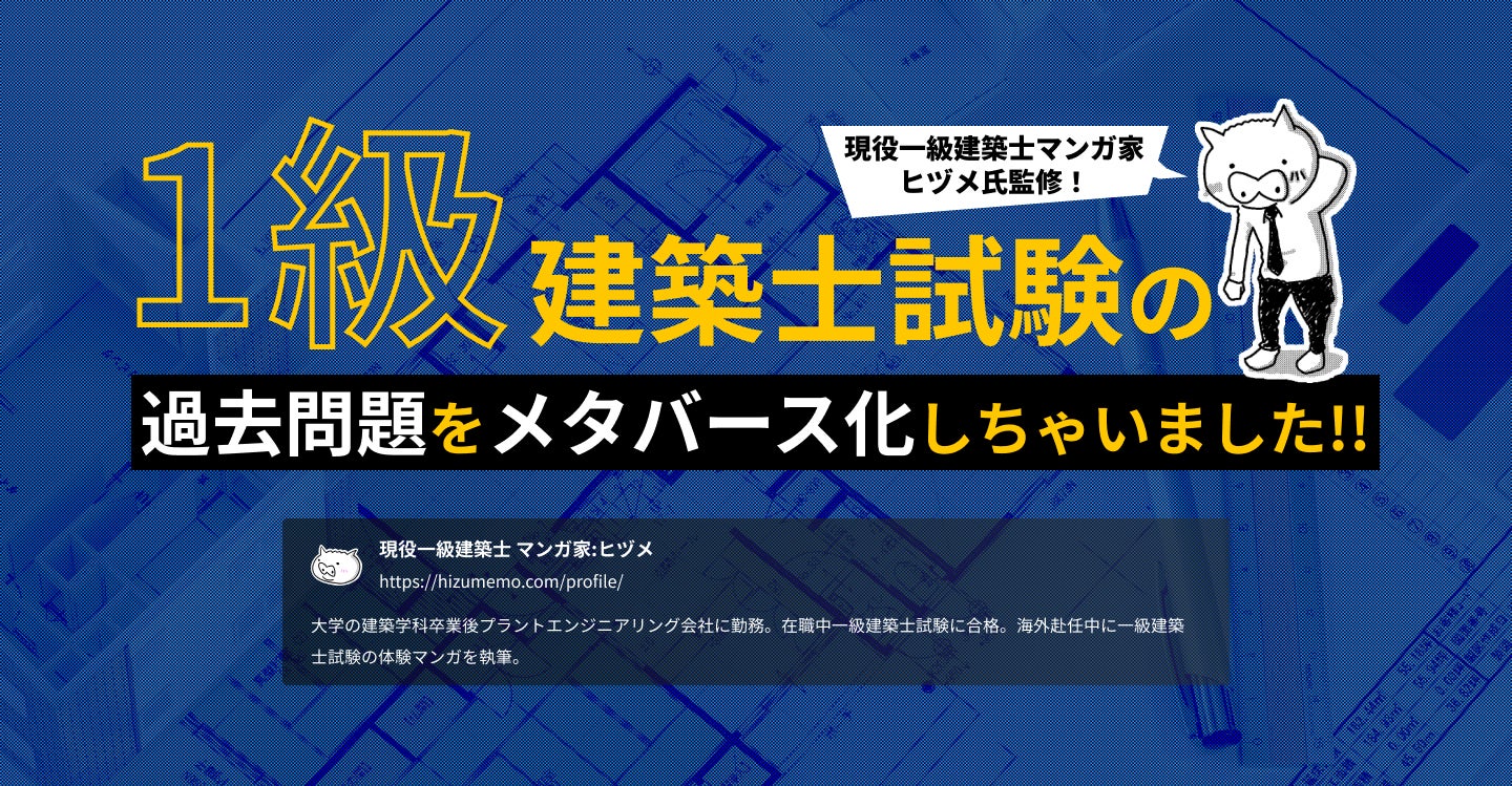 大学の建築学科卒業後プラントエンジニアリング会社に勤務。在職中一級建築士試験に合格。海外赴任中に一級建築士試験の体験マンガを執筆。一級建築士試験ブログにて過去に製図試験問題のマインクラフト化や問題解説を実施。